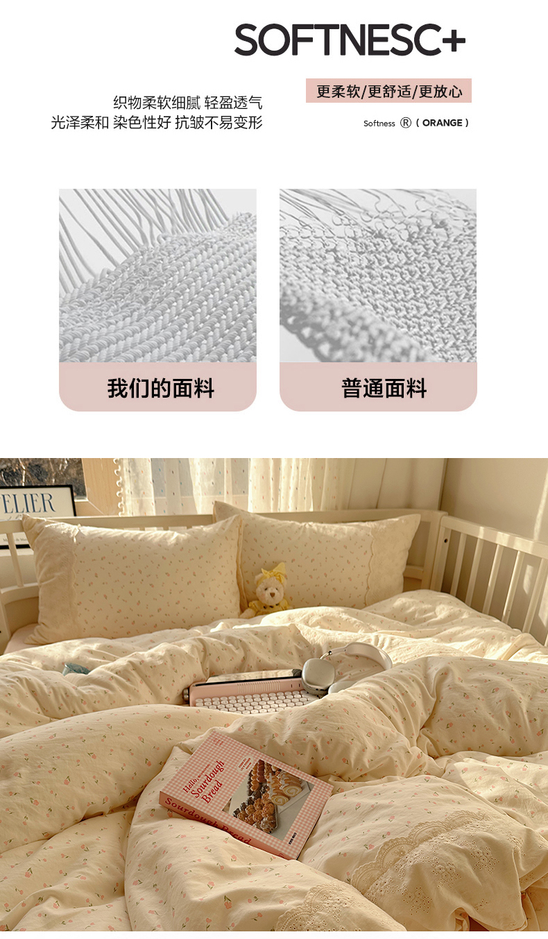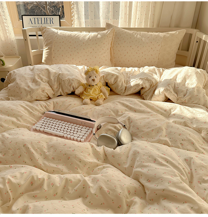 当前位置: 91家纺网 > 商品网购 > 床品套件 > 四件套 > 水洗棉四件套 > 盼季家纺 2025新款A类法式小清新皱皱纱花边蕾丝水洗棉床上四件套宿舍床笠三件套 皱皱纱花边-蝴蝶结米