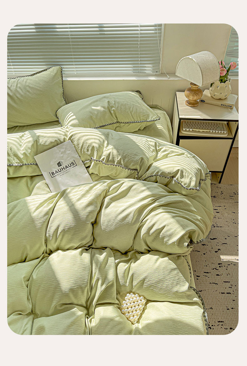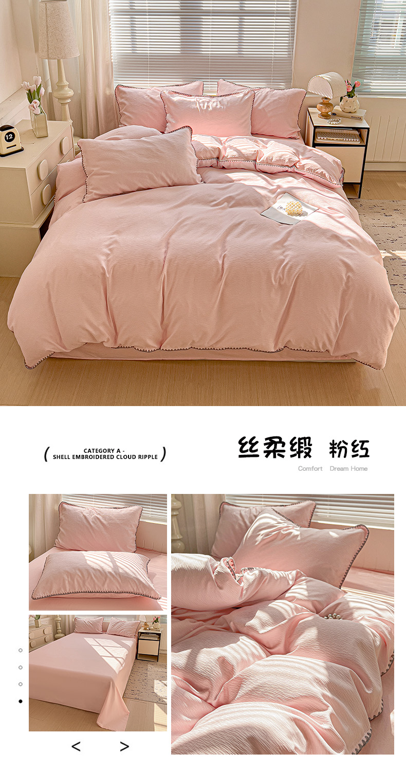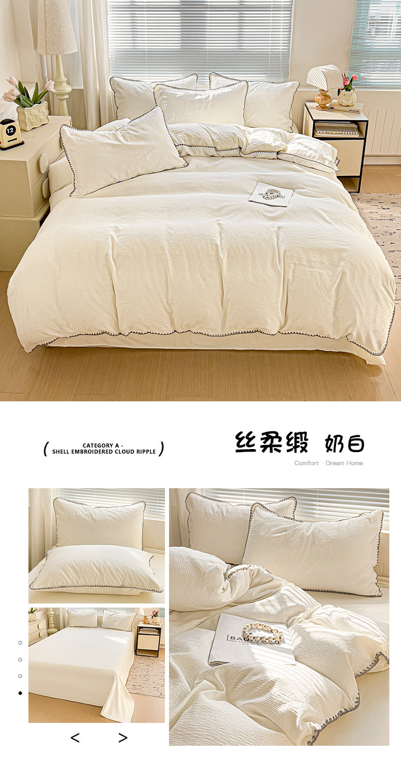 当前位置: 91家纺网 > 商品网购 > 床品套件 > 四件套 > 其它四件套 > 卡普二店 2025新款A类轻奢贝壳绣丝柔缎提花四件套 丝柔缎-黄绿