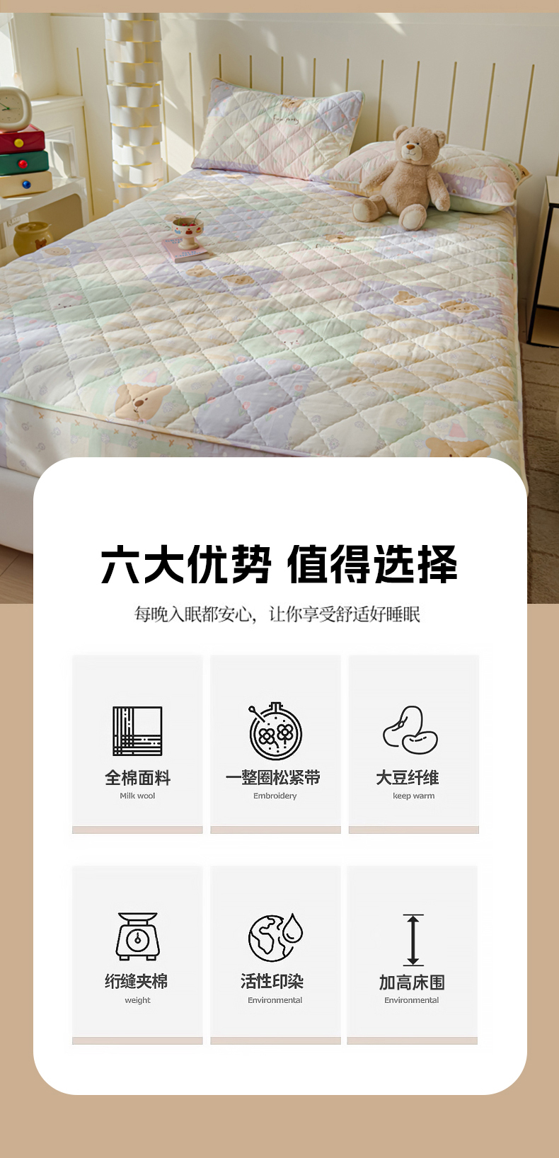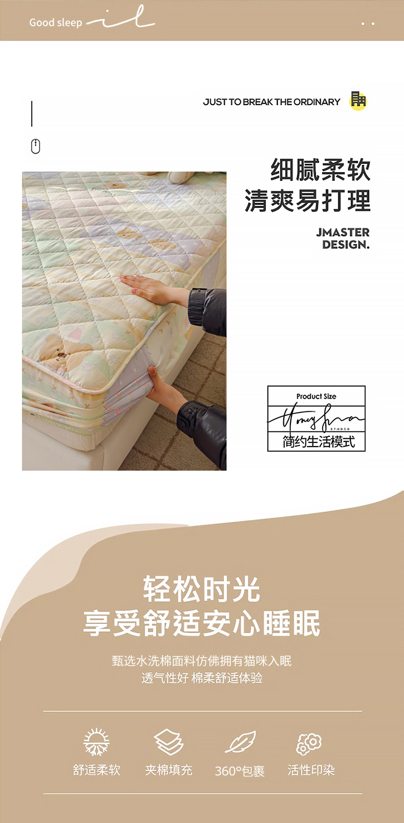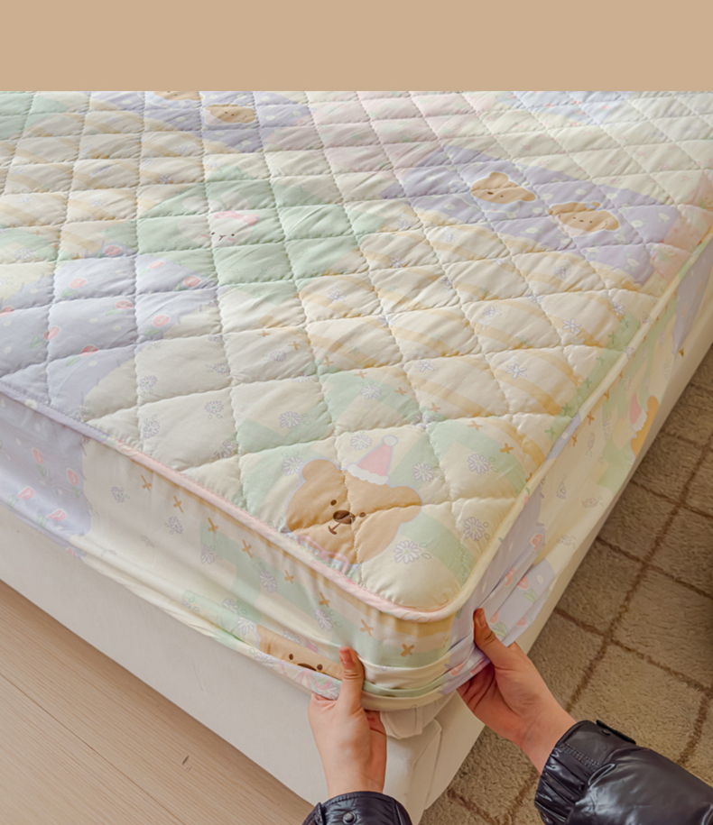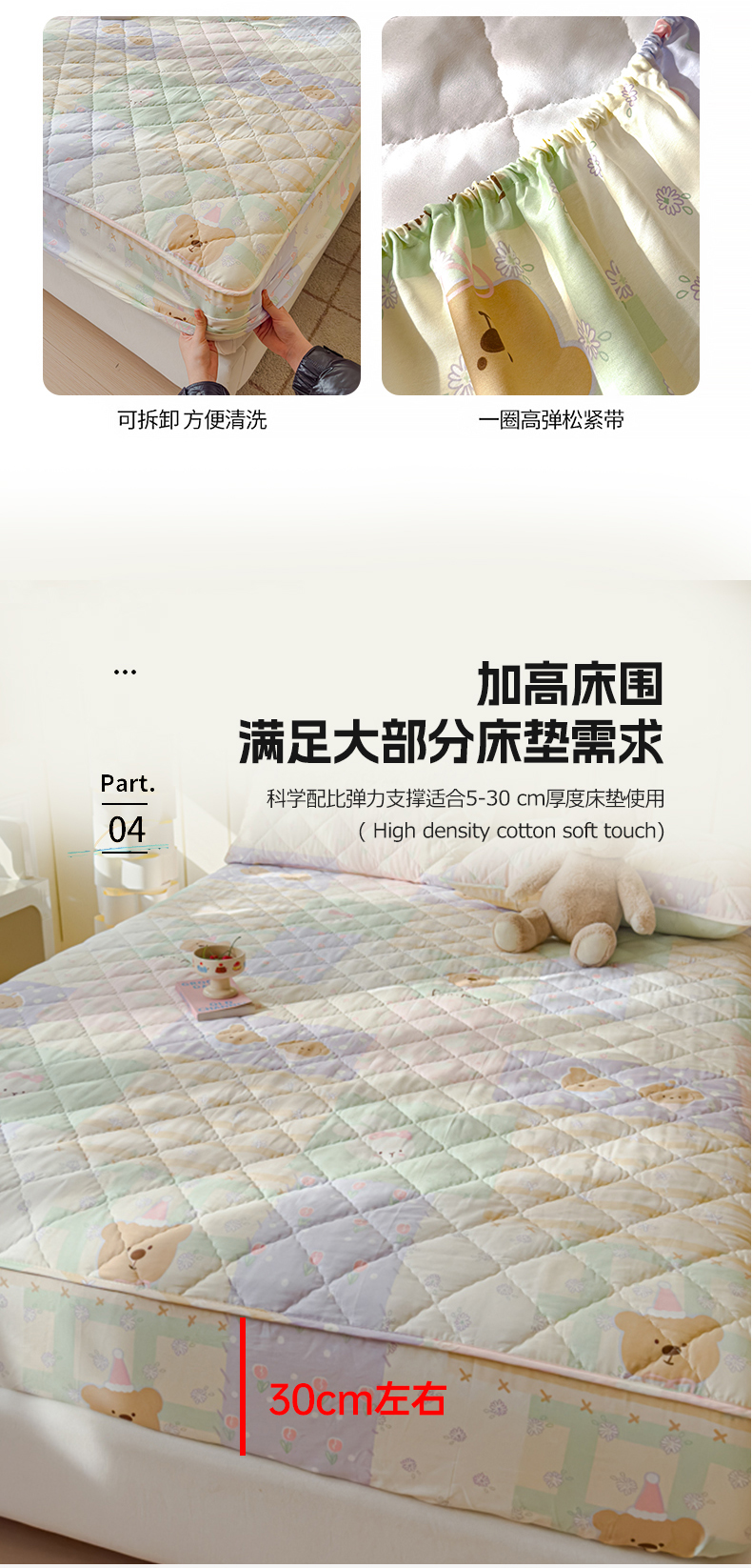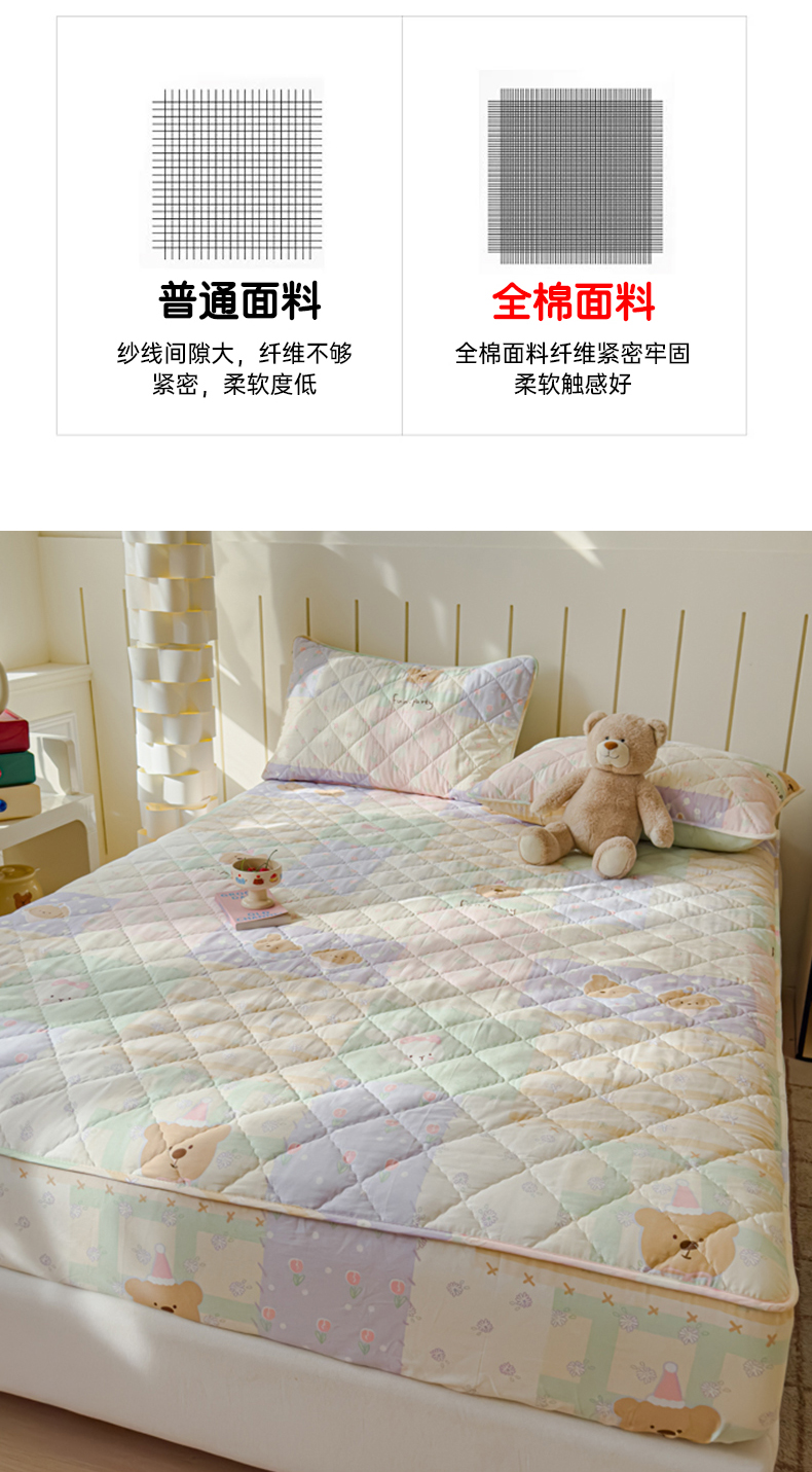 • 91家纺网 家纺一手货源 找家纺 U品汇 2025新款A类全棉夹棉防水床笠床罩单件隔尿透气床垫加厚防尘可水洗保护套 童话时光