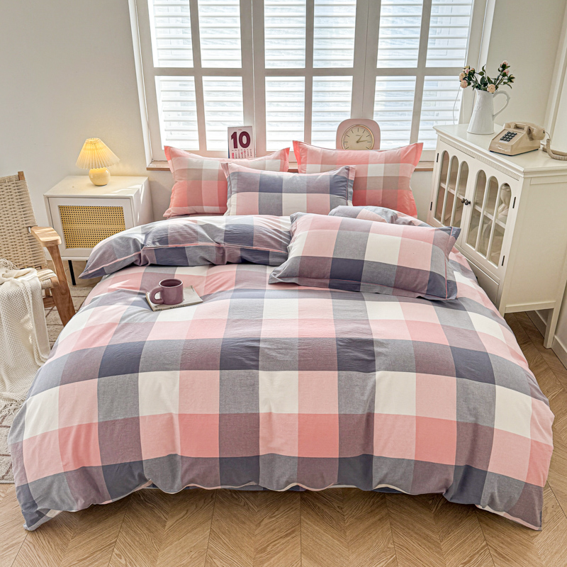 商品名称:喜四方 2025新款全棉色织水洗棉四件套 曲奇大格粉