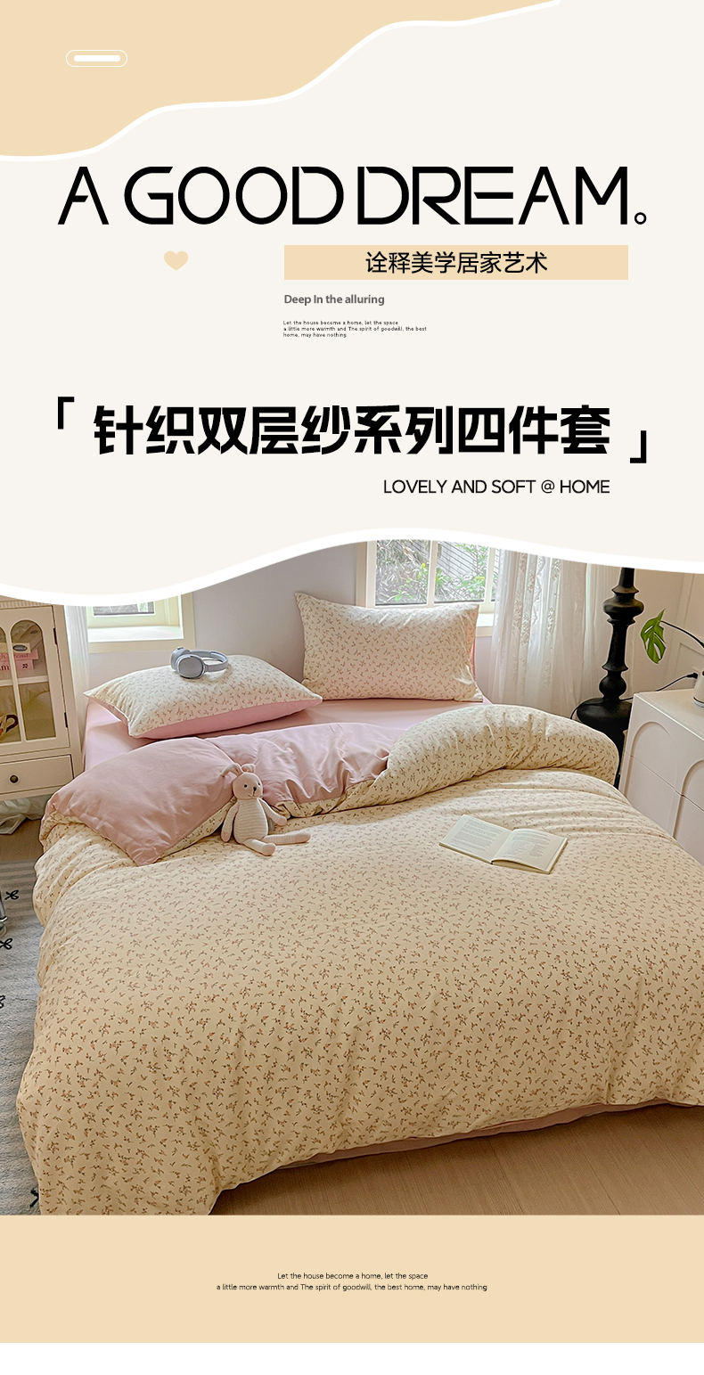 当前位置: 91家纺网 > 商品网购 > 床品套件 > 四件套 > 其它四件套 > 悦织湾家纺 2025新款A类针织双层纱四件套轻奢时尚床上用品三四件套直播电商热销款 生如夏花