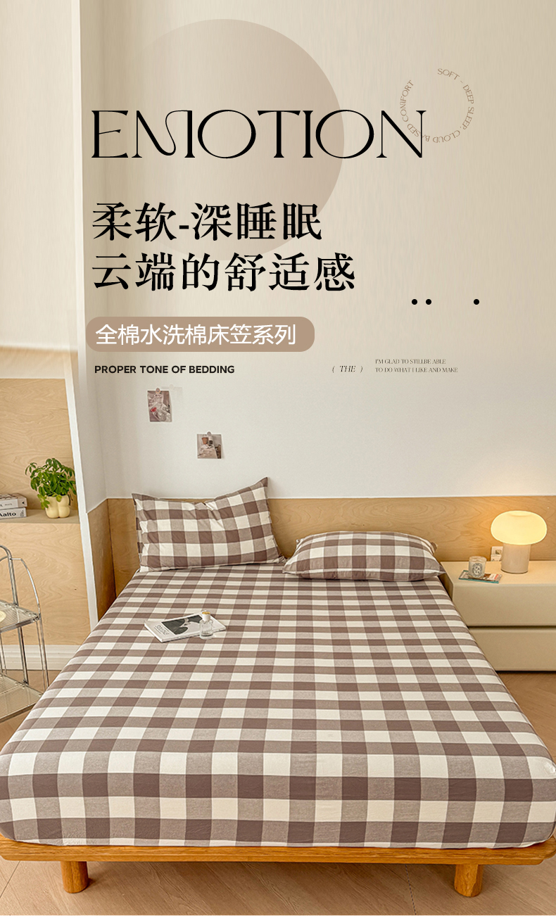 • 91家纺网 家纺一手货源 找家纺 晓时候 2025新款100%全棉色织水洗棉床笠全棉床笠纯棉床笠 灰中格