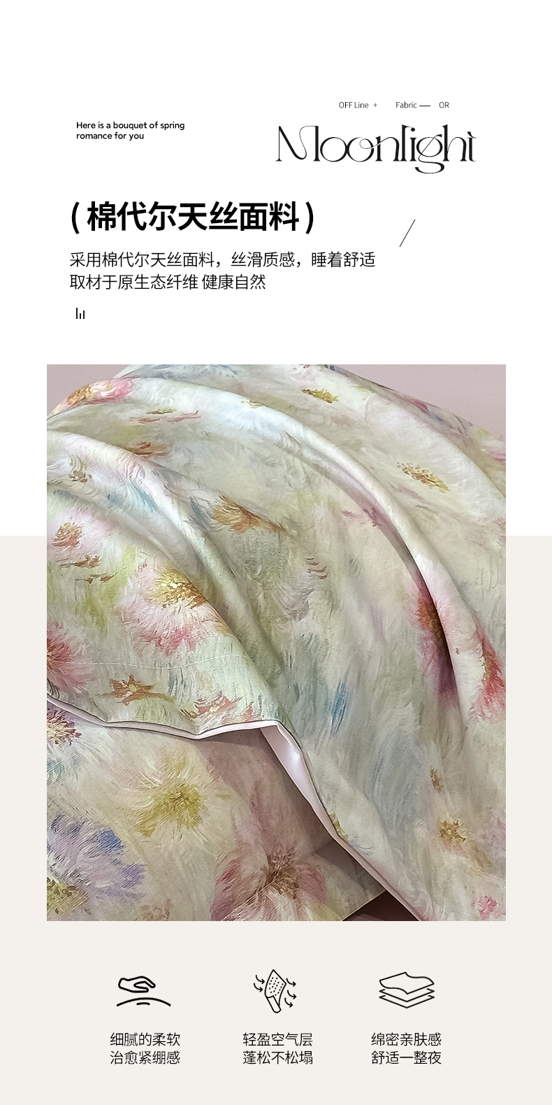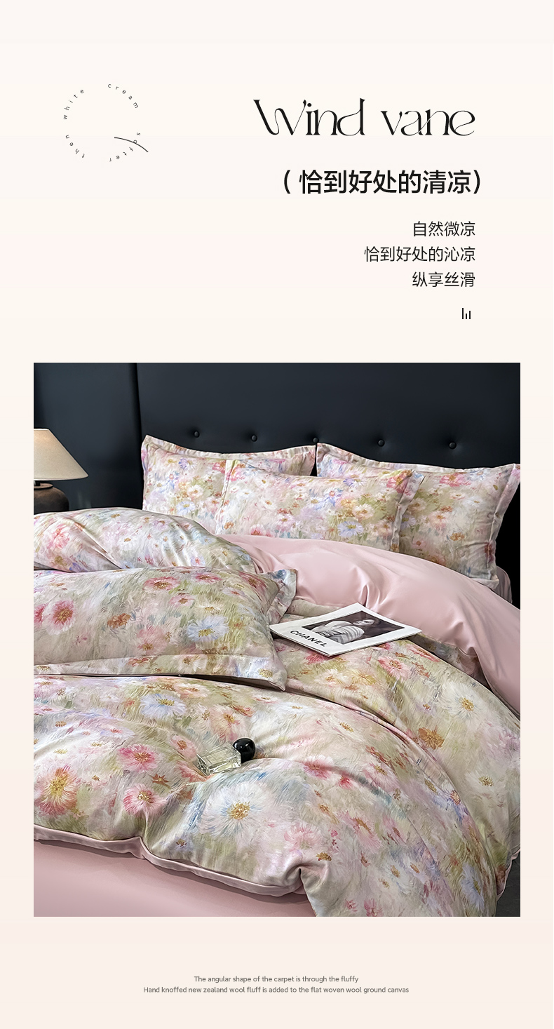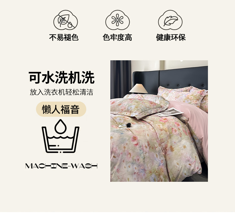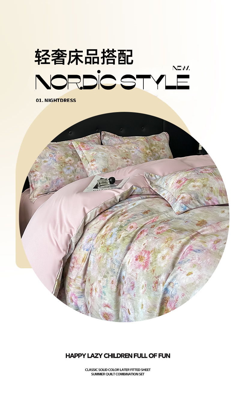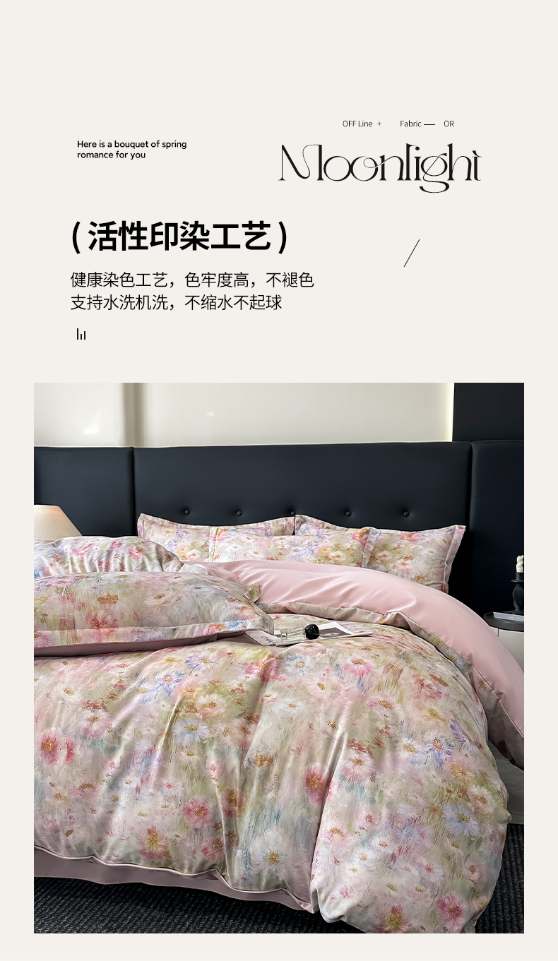 商品名称:金梦拉家纺 2025新款100%棉代尔天丝莱赛尔四件套 睡莲