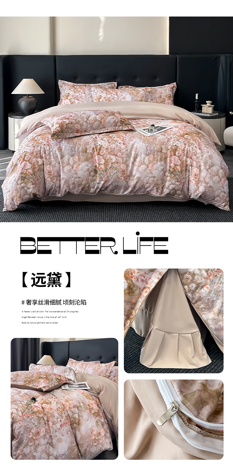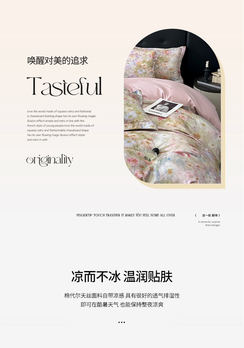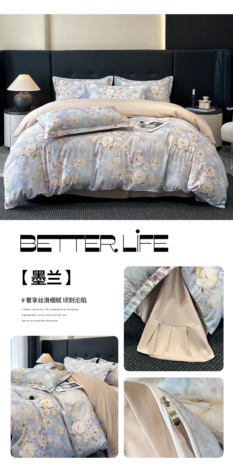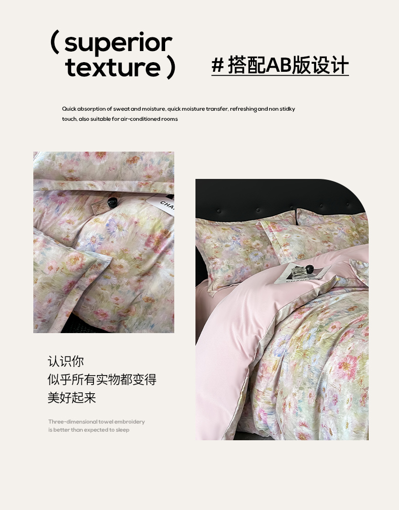 商品名称:金梦拉家纺 2025新款100%棉代尔天丝莱赛尔四件套 睡莲