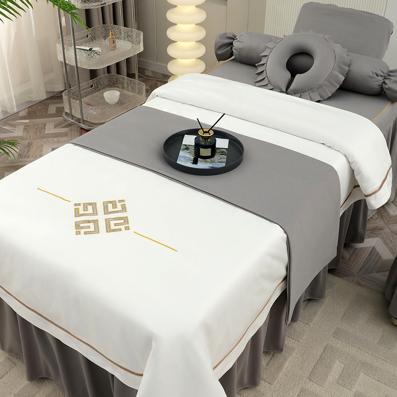 (总)千姿坊 2025新款秋冬加厚保暖牛奶绒美 容床罩四件套美 容院养生馆专用-叶语悠然,叶语悠然-黑色,叶语悠然-卡其,叶语悠然-浅灰