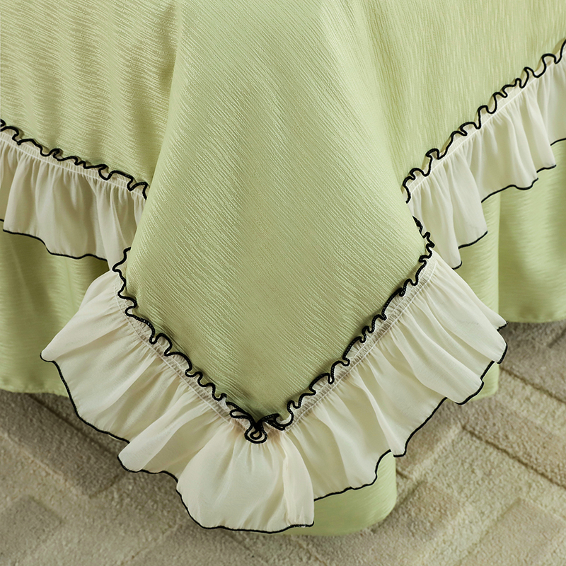 • 91家纺网 家纺一手货源 找家纺 千姿坊 2025新款泡泡纱针织床罩四件套 云梦绿