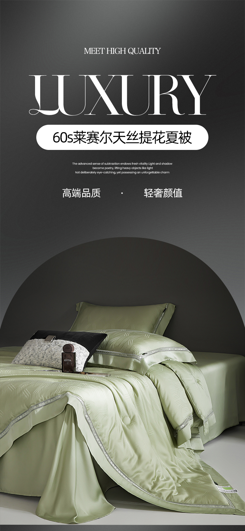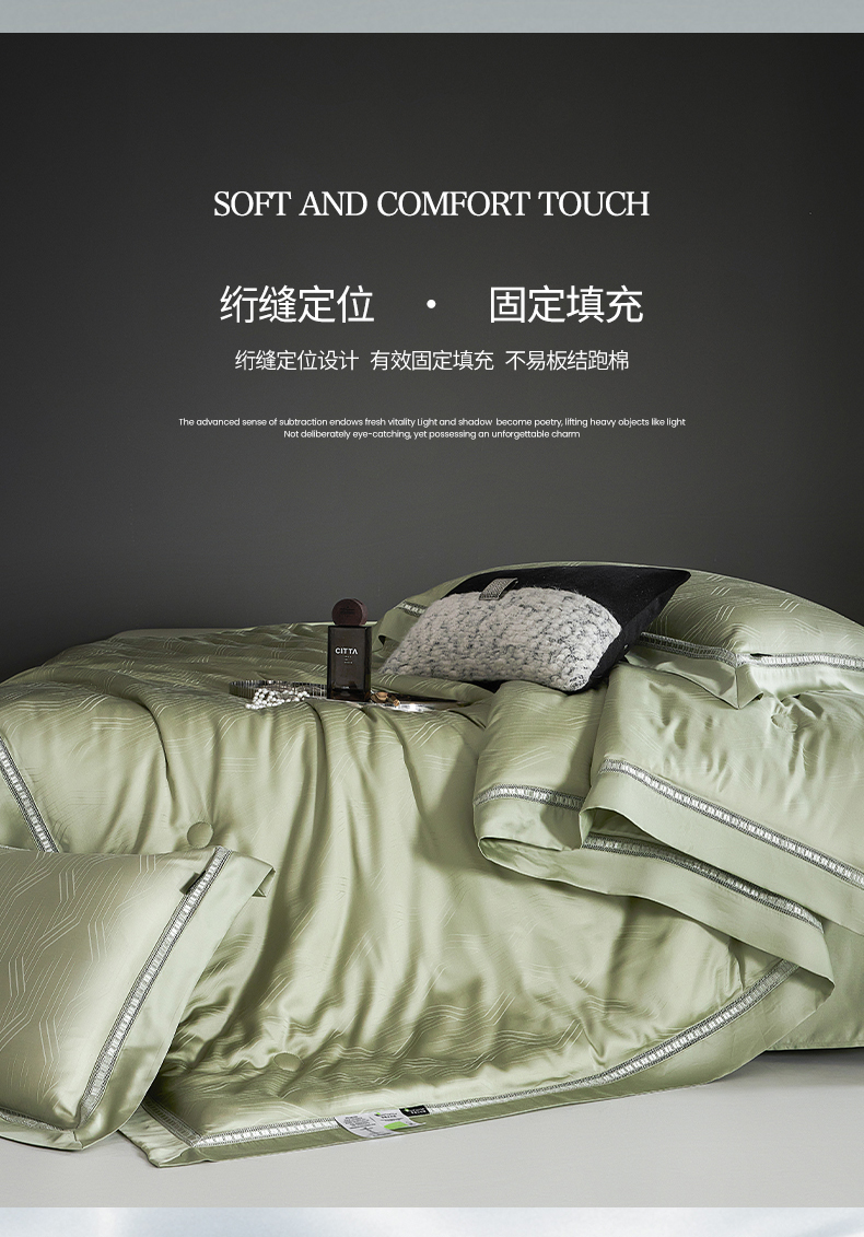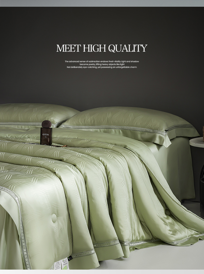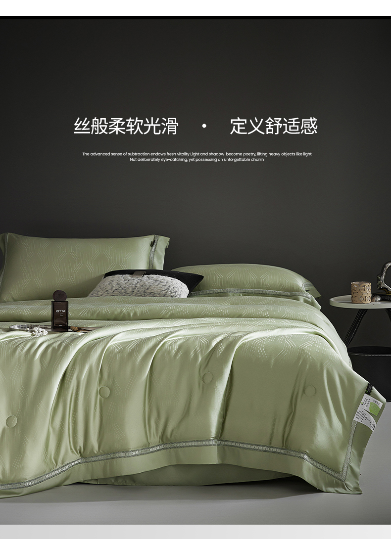 网客家纺 2025新款60天丝提花夏被四件套-香格里拉系列 香格里拉-青瓷绿