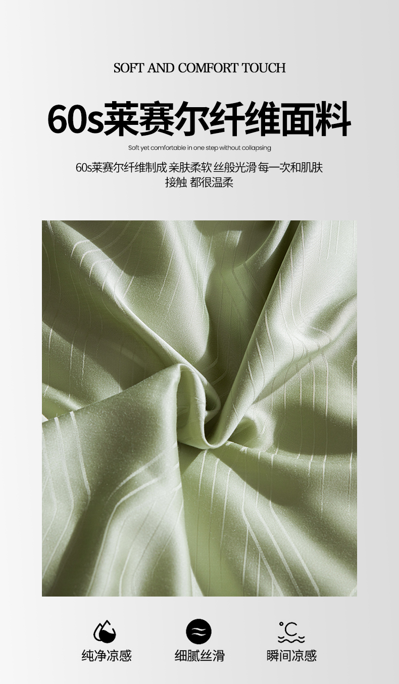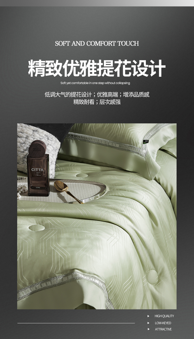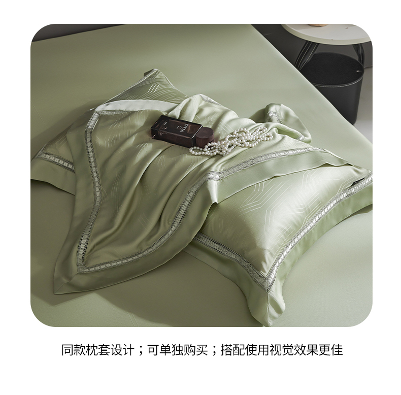 商品名称:网客家纺 2025新款60天丝提花夏被四件套-香格里拉系列 香格里拉-青瓷绿