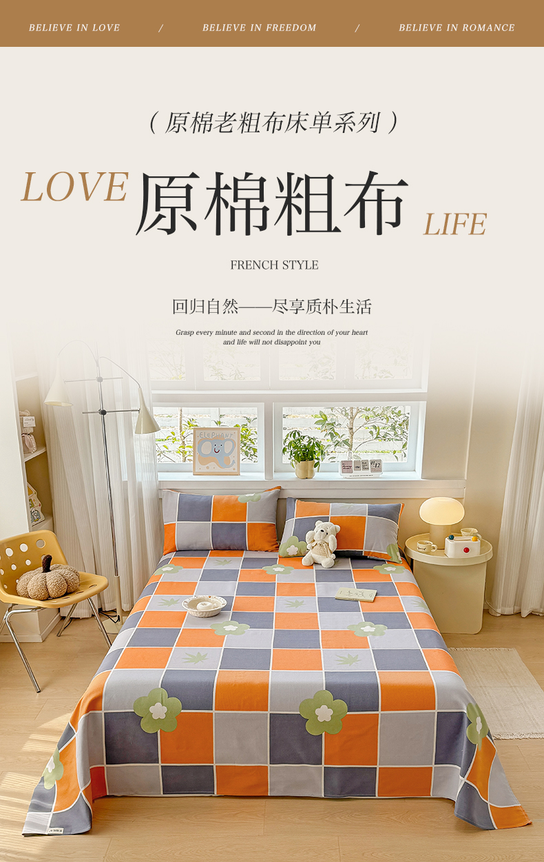 当前位置: 91家纺网 > 商品网购 > 床品套件 > 三件套 > 博弈家纺 2025新款亲肤舒适原棉老粗布床单凉席三件套系列 花间