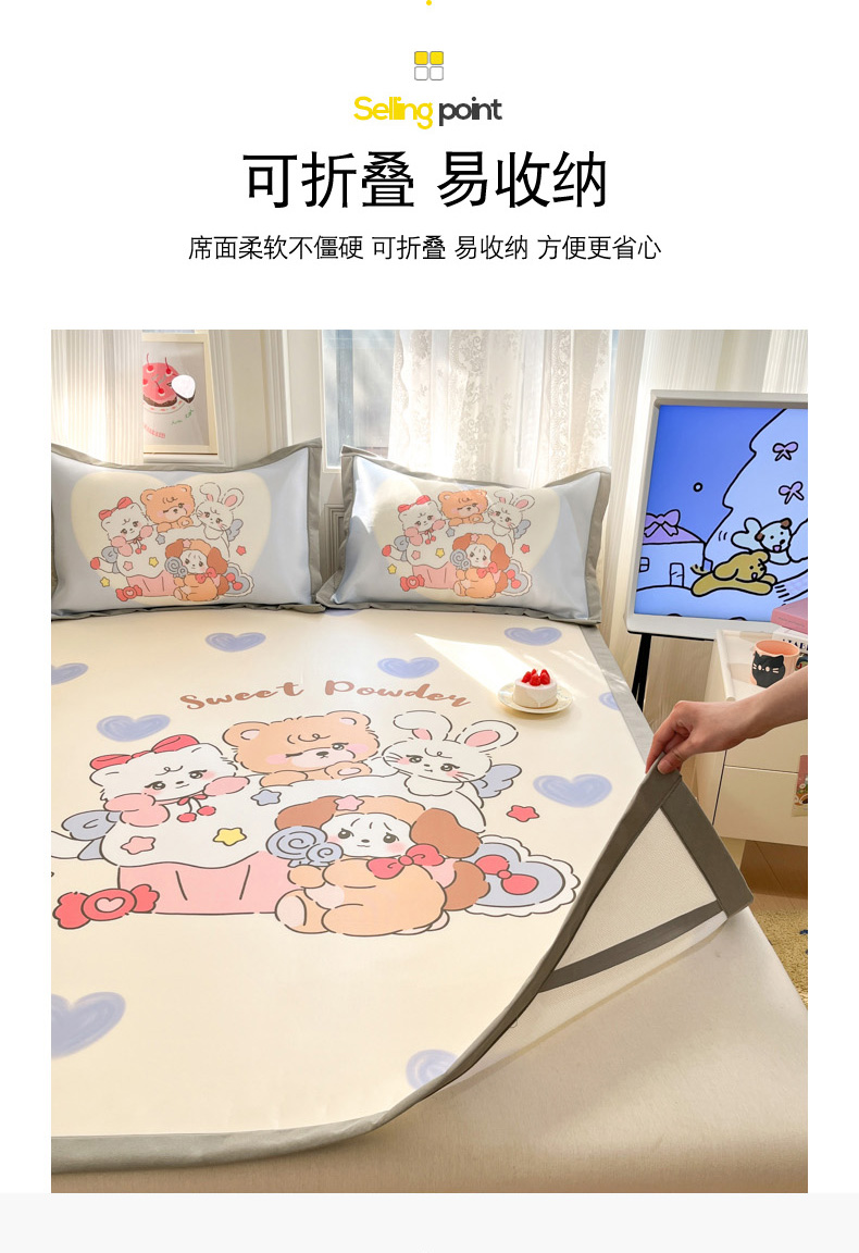 (总)柒月家居 2025新款印花冰藤席(学生床),猫猫日记,爱心布布,爱心蝴蝶结,背影猫,呆萌企鹅,粉色花海,风华-绿,格格熊,花蔓,绿茵,熊猫团子,夜空,字母熊宝