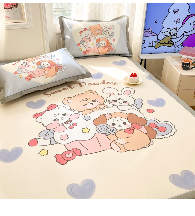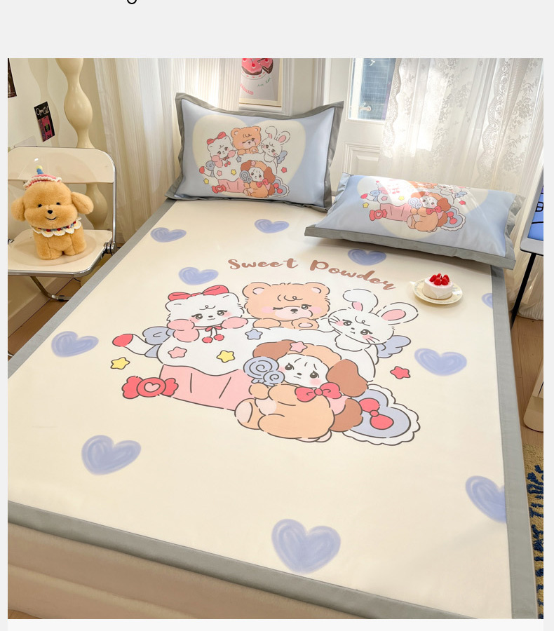 (总)柒月家居 2025新款小清新乳胶凉席夏被套件,爱心草莓,字母小熊,爱心小熊,粉色猫咪,格调,好伙伴,花季,萌宠派对,碎花小猫,星星腊肠狗,星星月亮
