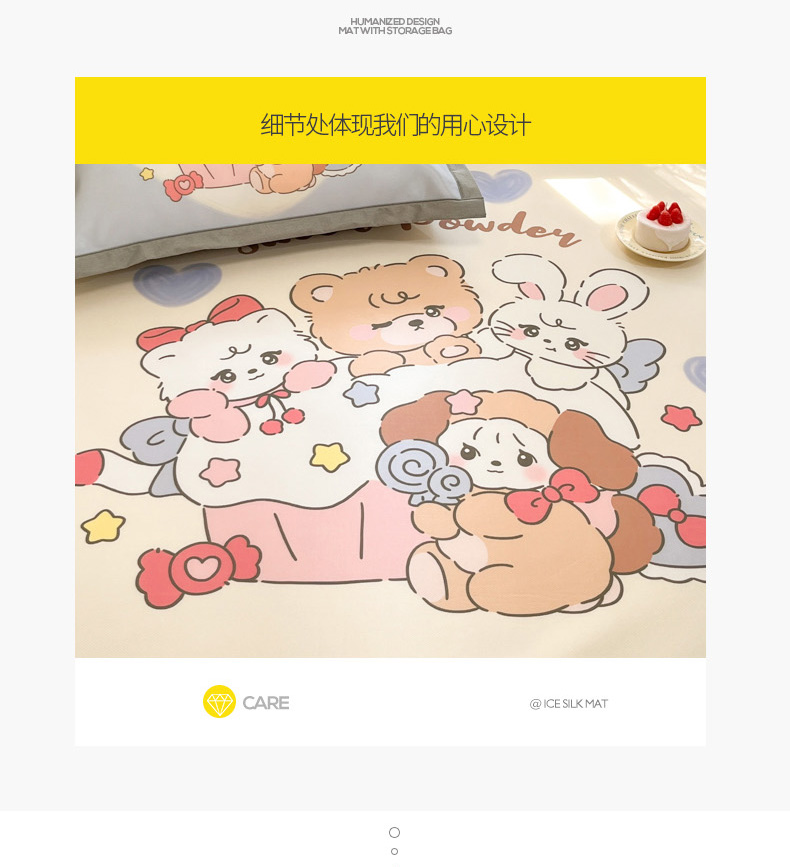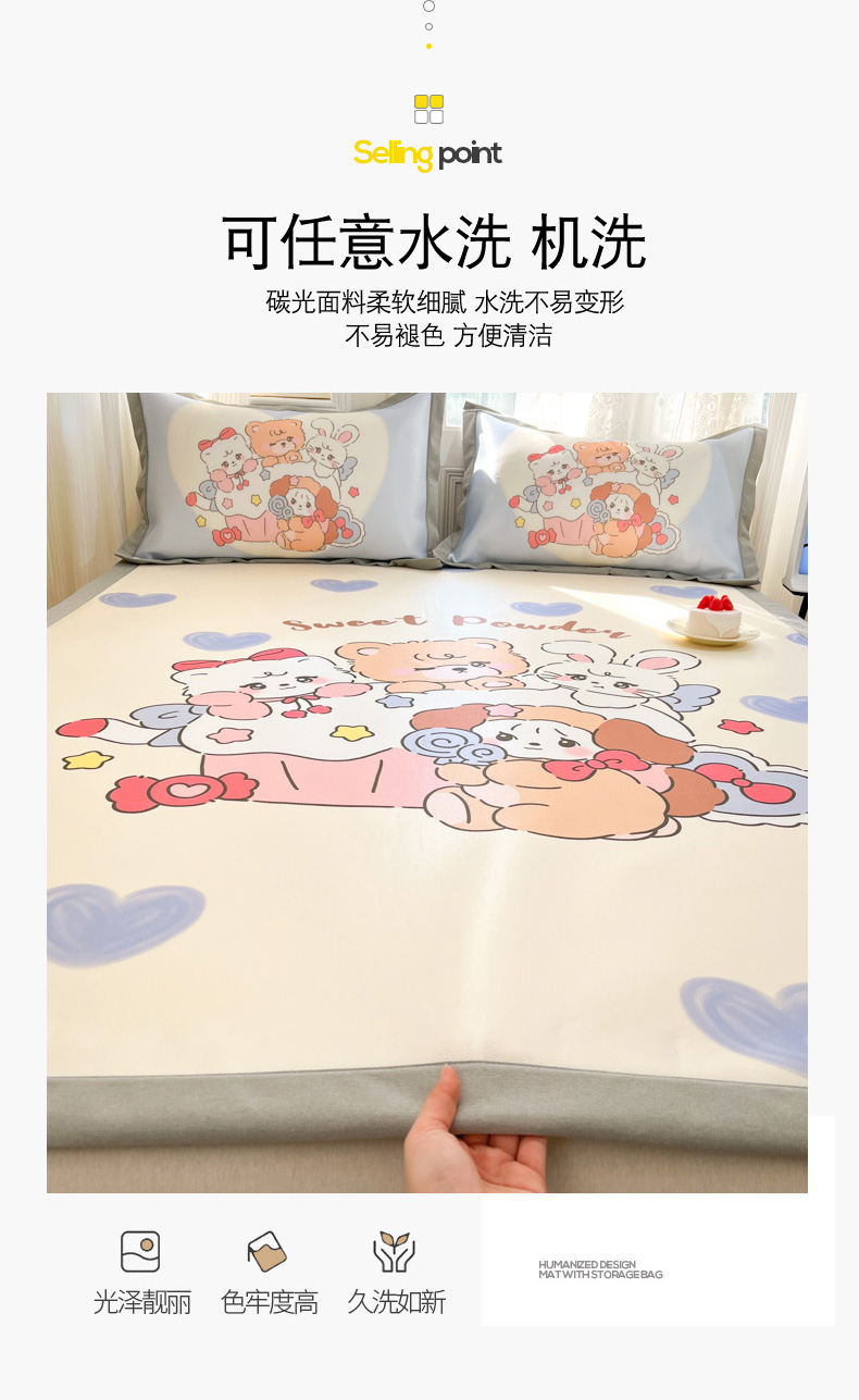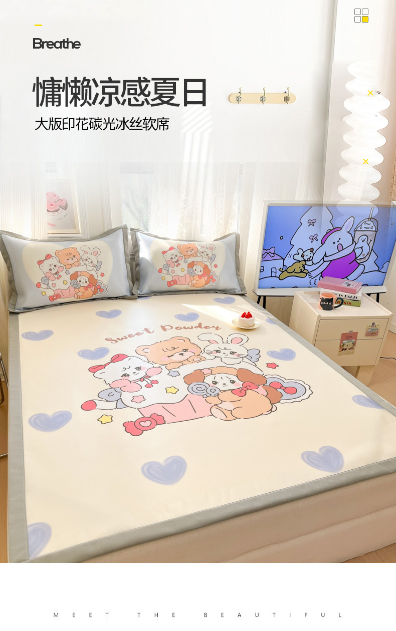 商品名称:柒月 2025新款大版数码印花碳光冰丝席 甜蜜心事