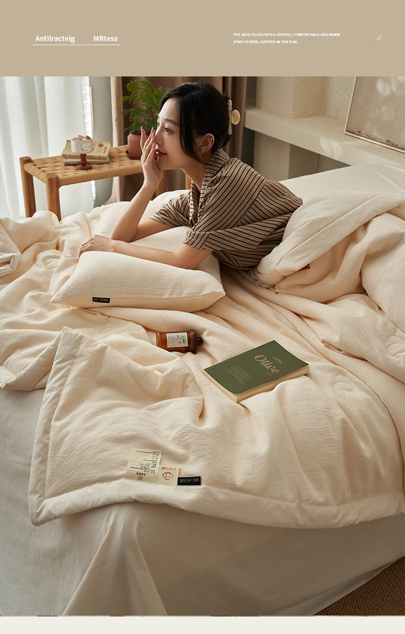• 91家纺网 家纺一手货源 找家纺 寐绸家纺 2025新款纯棉水洗棉三层提花大豆纤维夏被四件套 肌理纹夏被-本白