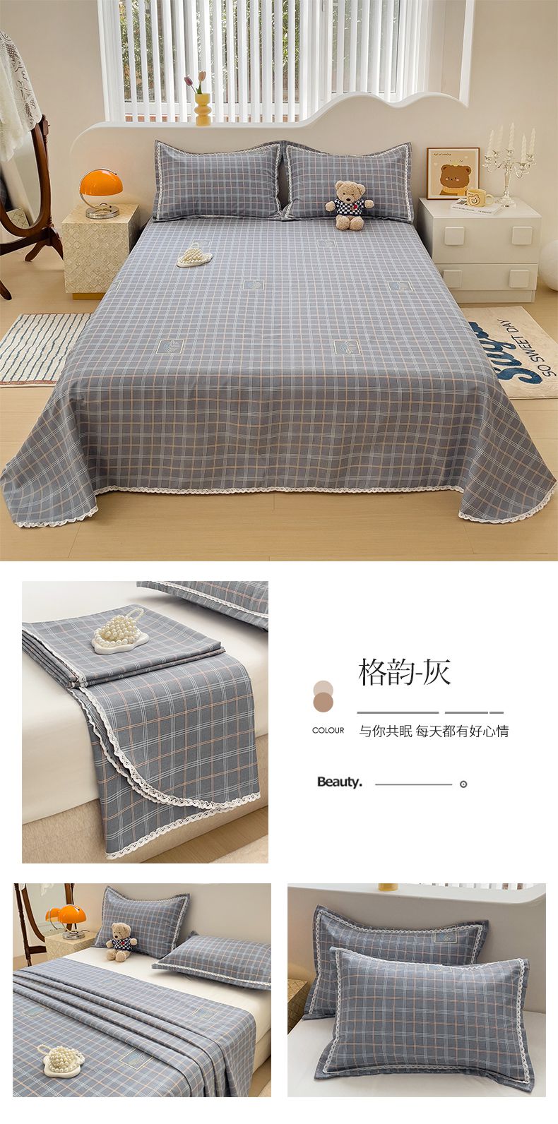 商品名称:梵克保罗 2025新款鱼骨棉老粗布凉席花边款床单三件套 格韵-灰