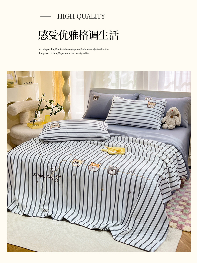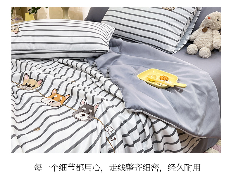 (总)经年 2025新款 学生季40S-13372大版全棉四件套-小熊比尔,小熊比尔-灰,小熊比尔-蓝,小熊比尔-棕