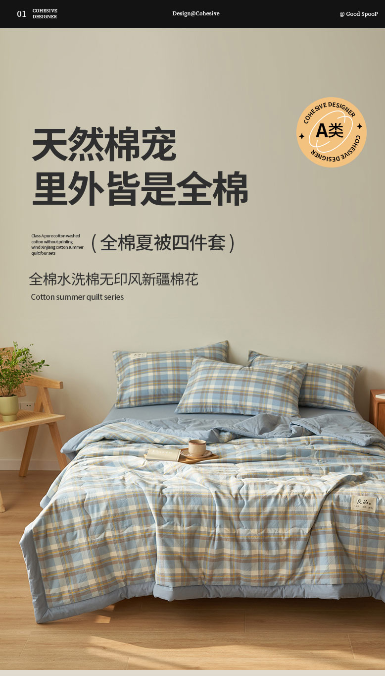 • 91家纺网 家纺一手货源 找家纺 寐绸家纺 2025新款纯棉水洗棉无印风新疆棉花夏被四件套 莫妮卡