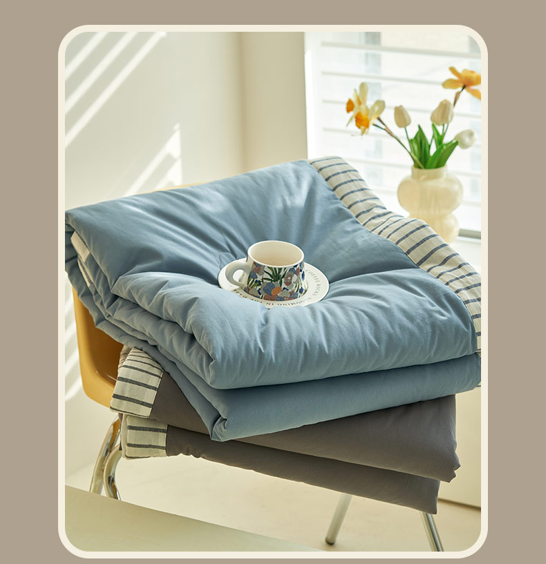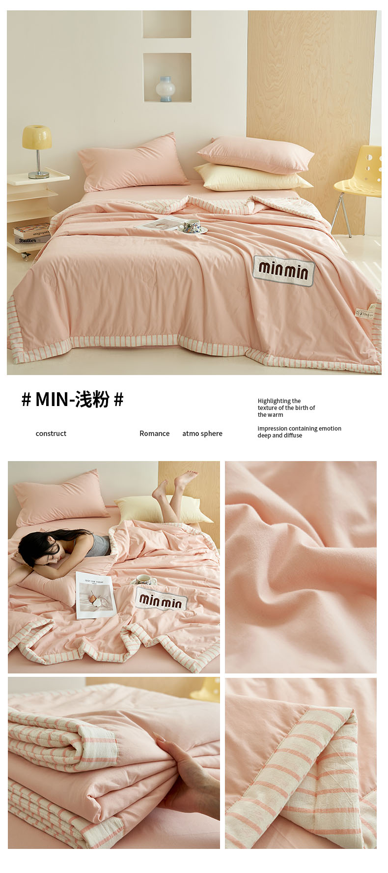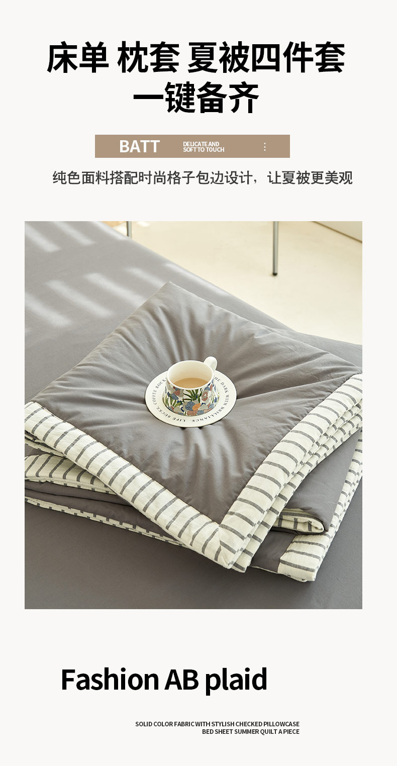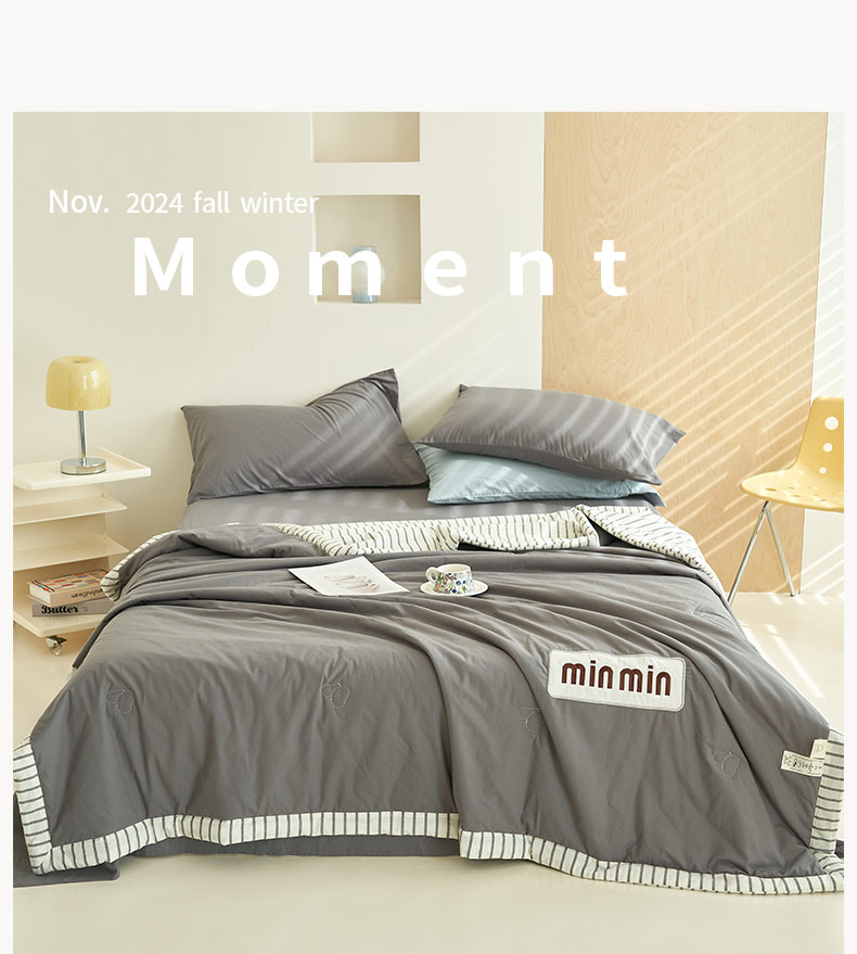 • 91家纺网 家纺一手货源 找家纺 寐绸家纺 2025新款纯棉水洗棉min绣花竖条边大豆纤维夏被四件套 MIN-深灰