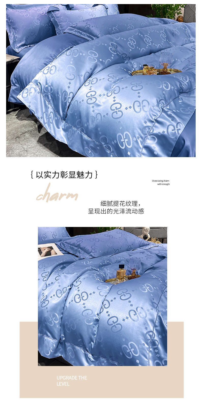 (总) 新25 经年2025年 水洗真丝冰丝天丝提花四件套直播爆款 格林系列 ,格林-宝蓝,格林-粉玉,格林-浅灰,格林-天蓝,格林-香槟