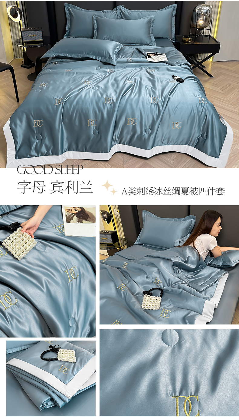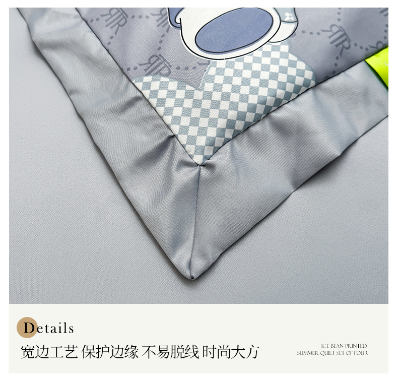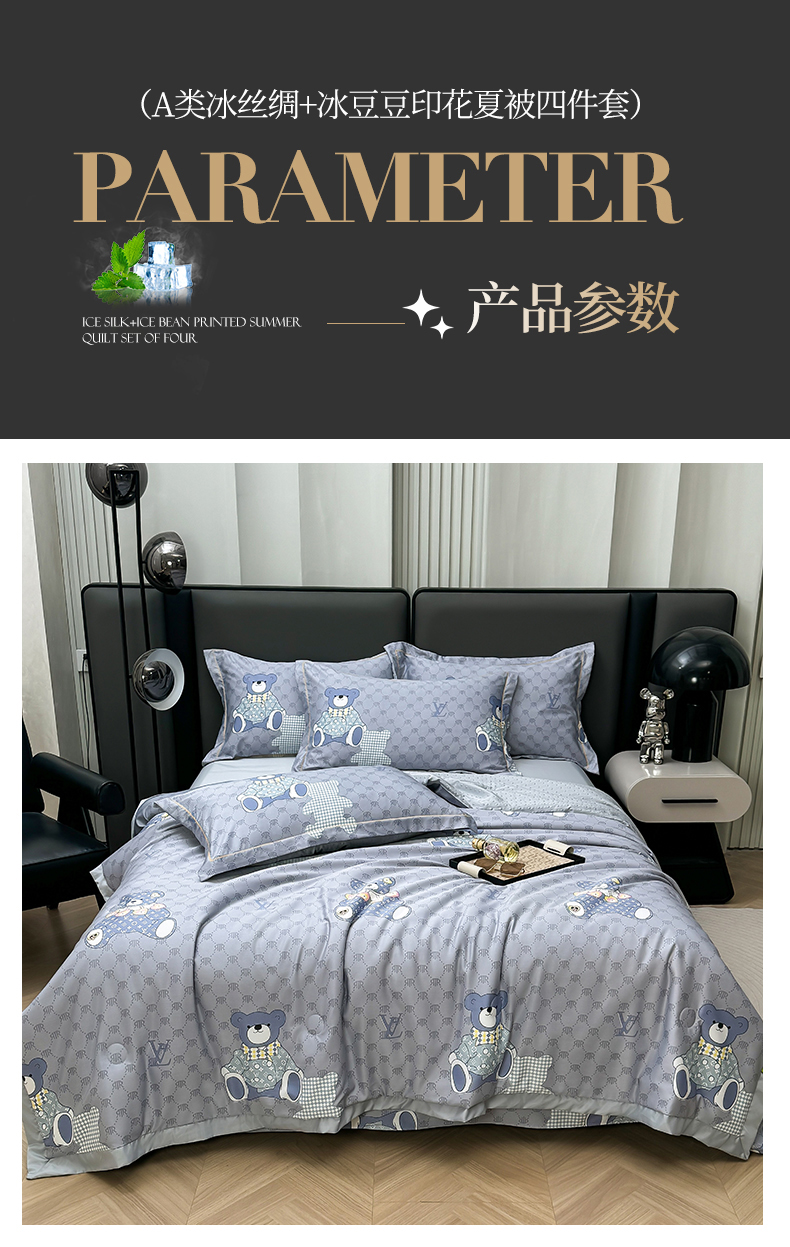 当前位置: 91家纺网 > 商品网购 > 床品套件 > 四件套 > 夏被四件套 > 满羽家纺 2025热款冰丝绸冰豆豆被夏被四件套凉感空调被(踩棉工艺)(吊边床单)-印花 呆呆熊蓝