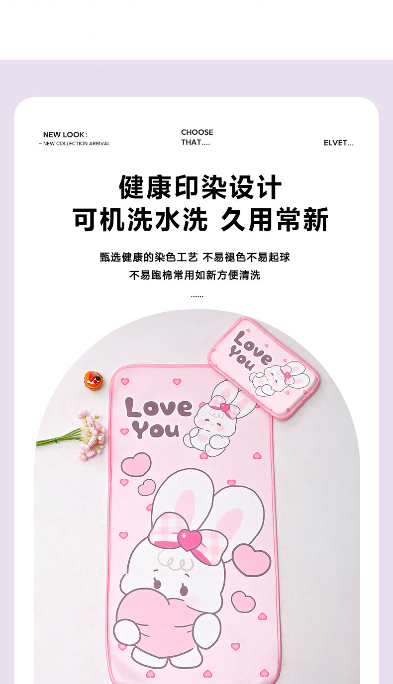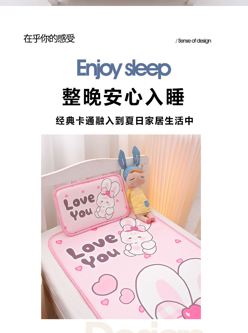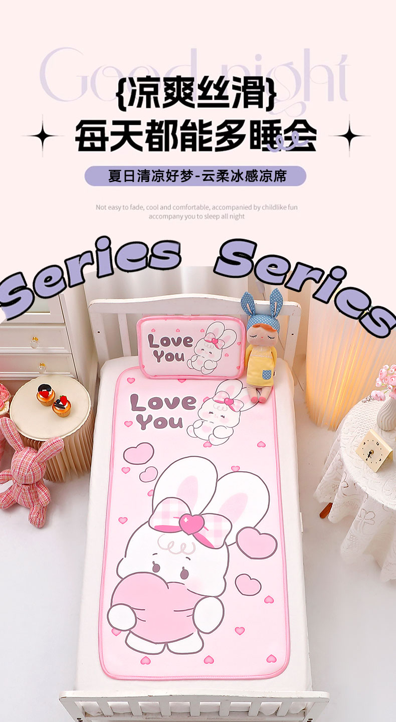 八零年代 2025新品云柔牛奶丝儿童凉席套件云朵小兔