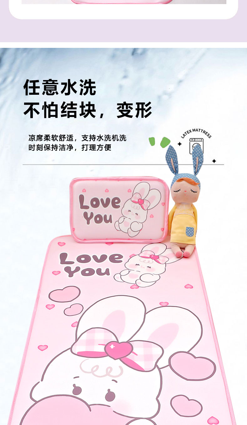 商品名称:八零年代 2025新品云柔牛奶丝儿童凉席套件云朵小兔