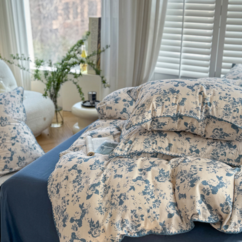 当前位置: 91家纺网 > 商品网购 > 床品套件 > 四件套 > 全棉普通四件套 > 金丝鸟家纺 2025新款全棉双层纱贝壳边四件套花卉系列 青瓷花弄