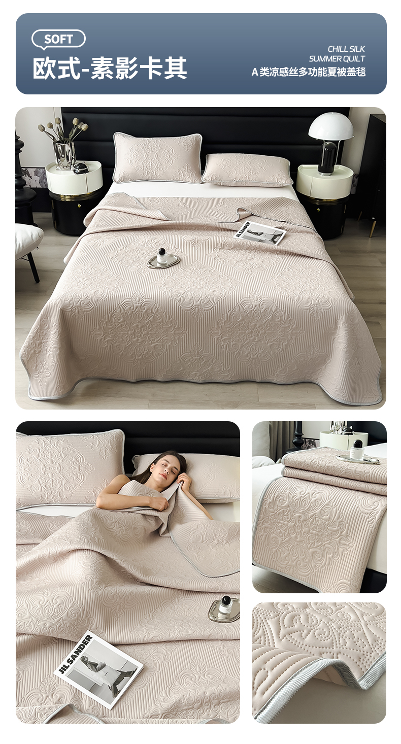 商品名称:世纪绒品 2025新款A类凉感科技欧式多功能夏被床单盖毯 欧式-素影卡其