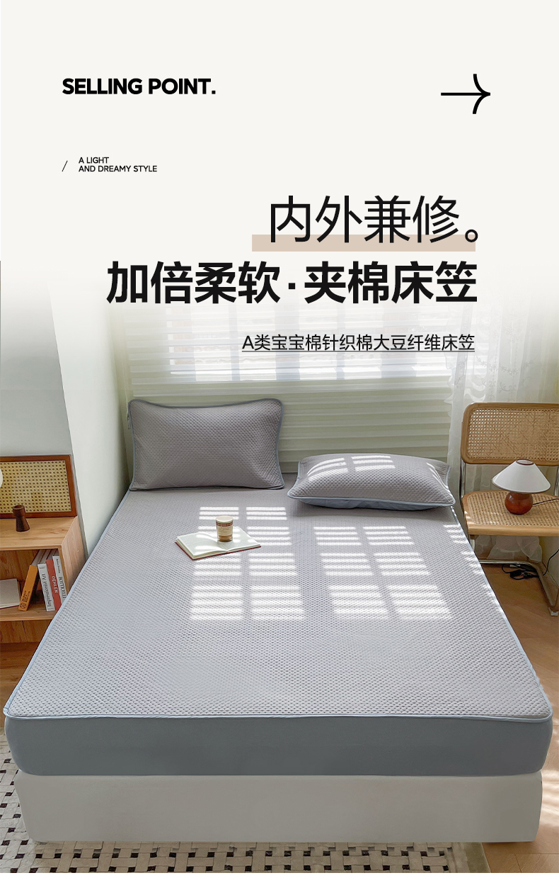 商品名称:莱登卡奴 2025新款A类宝宝棉针织棉大豆夹棉床笠 夹棉款-中灰