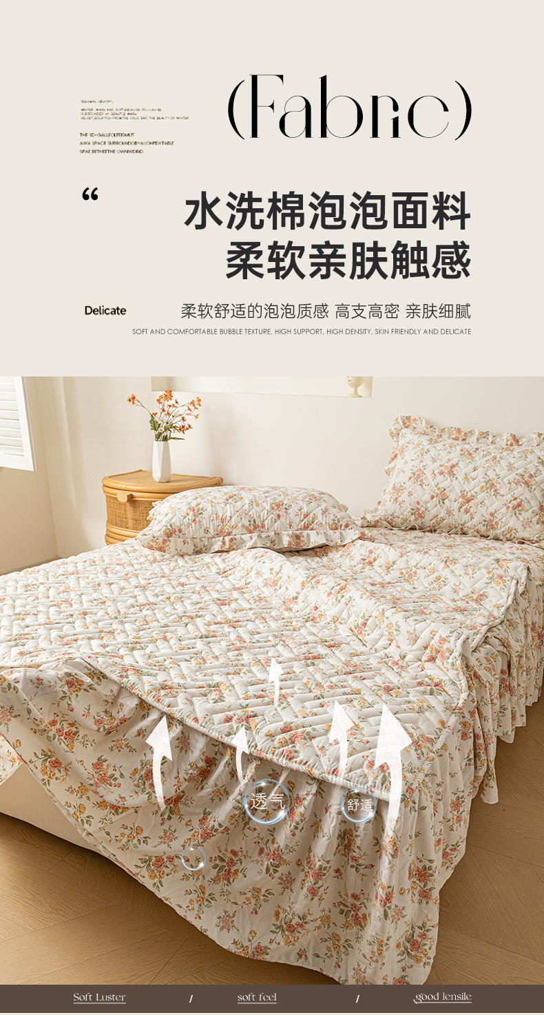 当前位置: 91家纺网 > 商品网购 > 床品套件 > 三件套 > 屹成家纺 2025新款水洗泡泡棉床裙三件套 繁花似锦