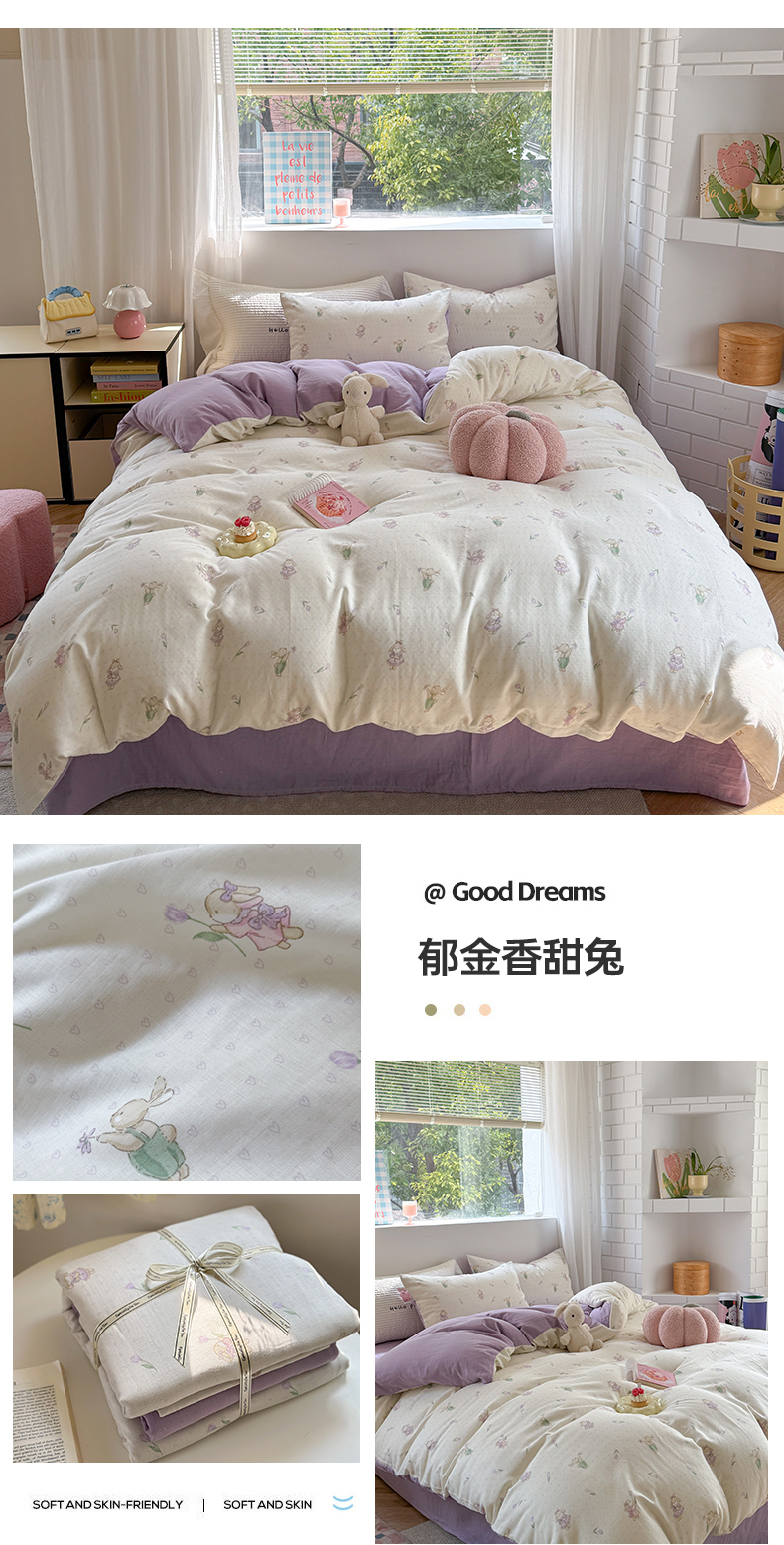 (总)时年家纺 2025新款全棉有氧双层纱系列套件 充值会员优惠5元/套,春日,清辞