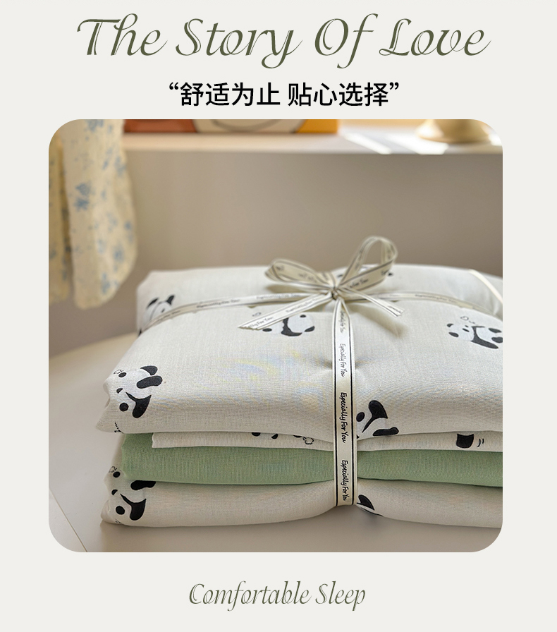 商品名称:2025新款全棉有氧双层纱四件套-卡通系列 熊猫仔仔