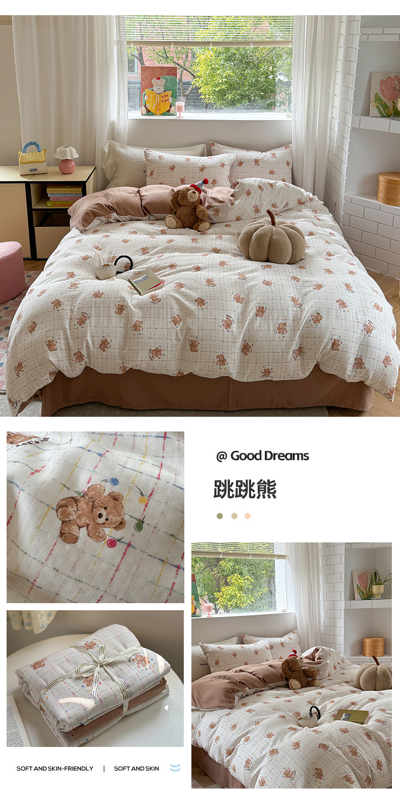 (总)时年家纺 2025新款全棉磨毛大版卡通印花系列套件,趣味熊,爱心熊,安静小象,波点兔,可爱熊宝,萌宝,奶油玩偶,小奥汀,慵懒猫咪