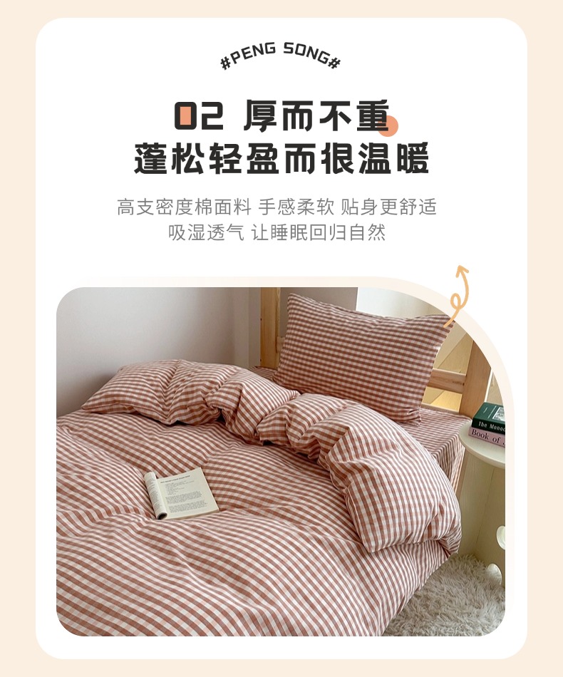 商品名称:拔萃 2025新款全棉纯棉色织学生上下铺套件格子纯棉宿舍三件套六件套 青春粉