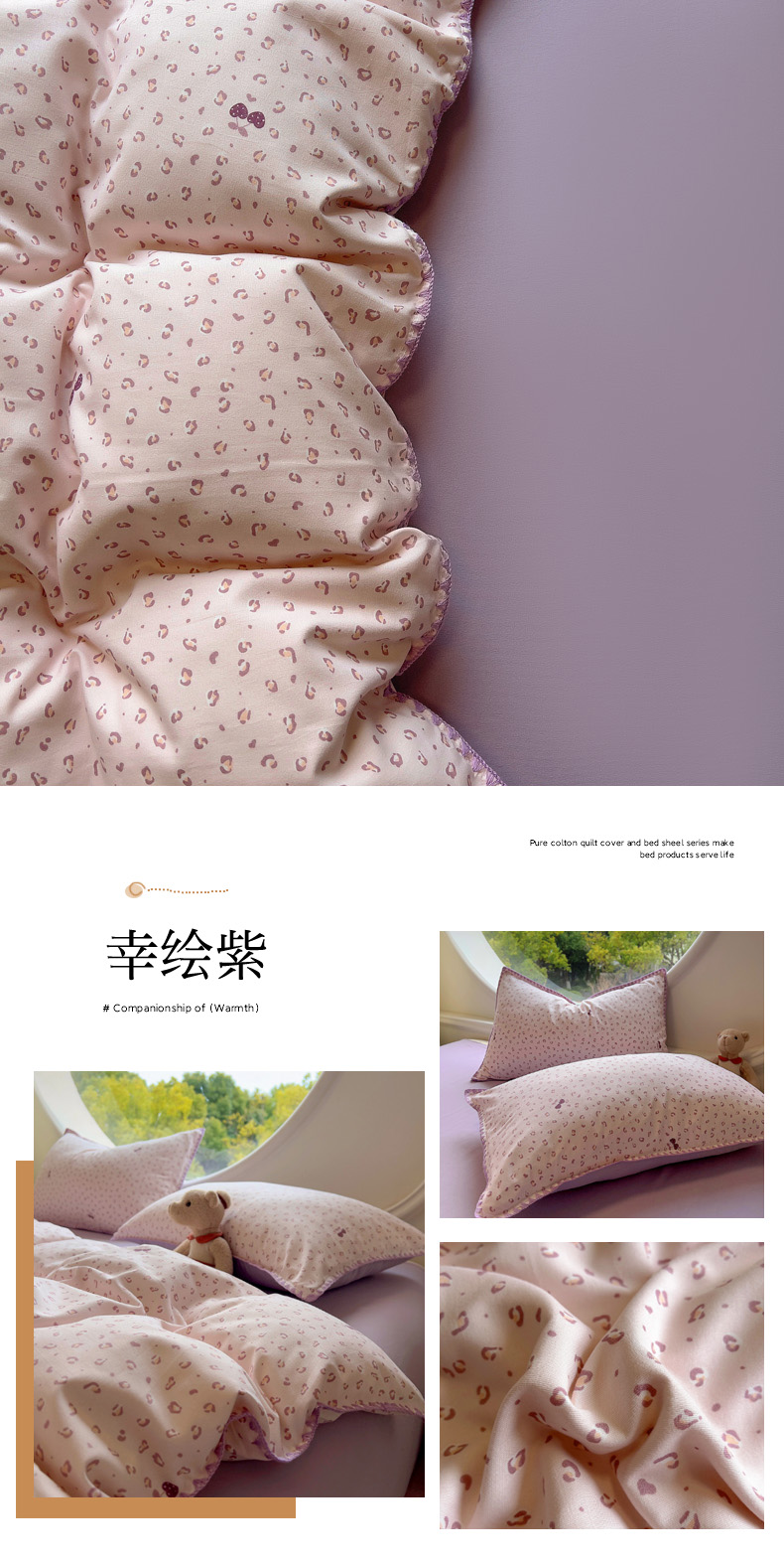 商品名称:葡萄家 2025爆款高克重彩色三角针A类针织双层纱四件套 提供买家秀 幸绘紫