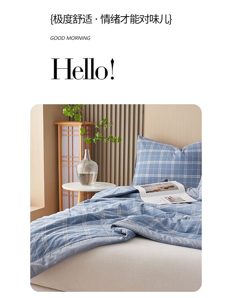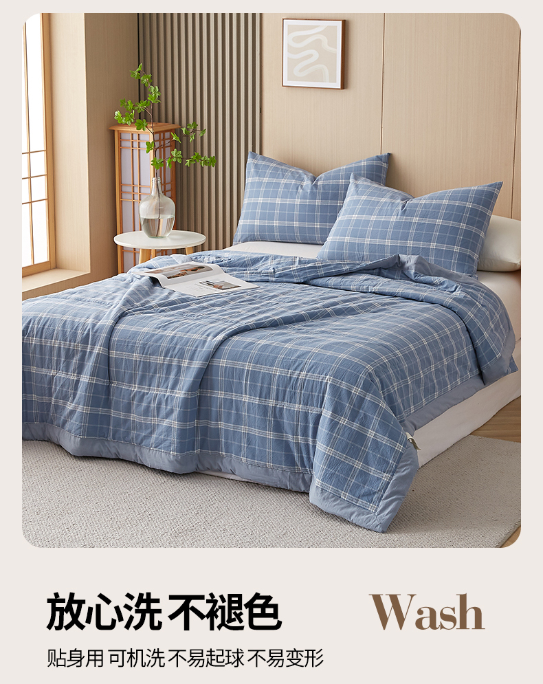 商品名称:伊人坊 2025新款水洗棉棉花夏被 乔南-蓝