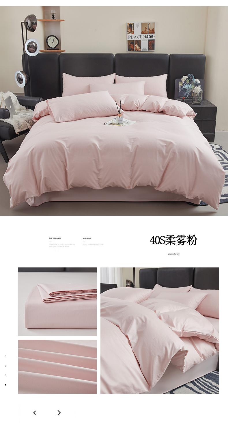 商品名称:雅萱家纺 2025新款40S斜纹13372全棉纯色四件套 40S胭脂粉