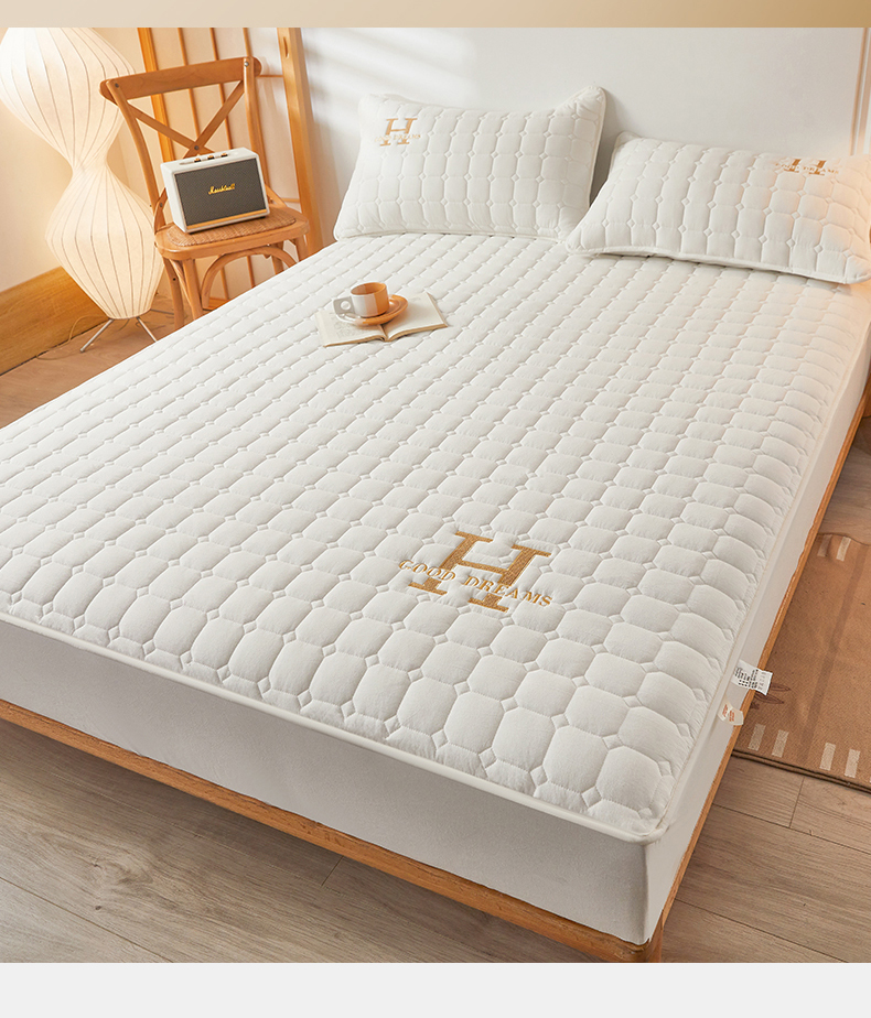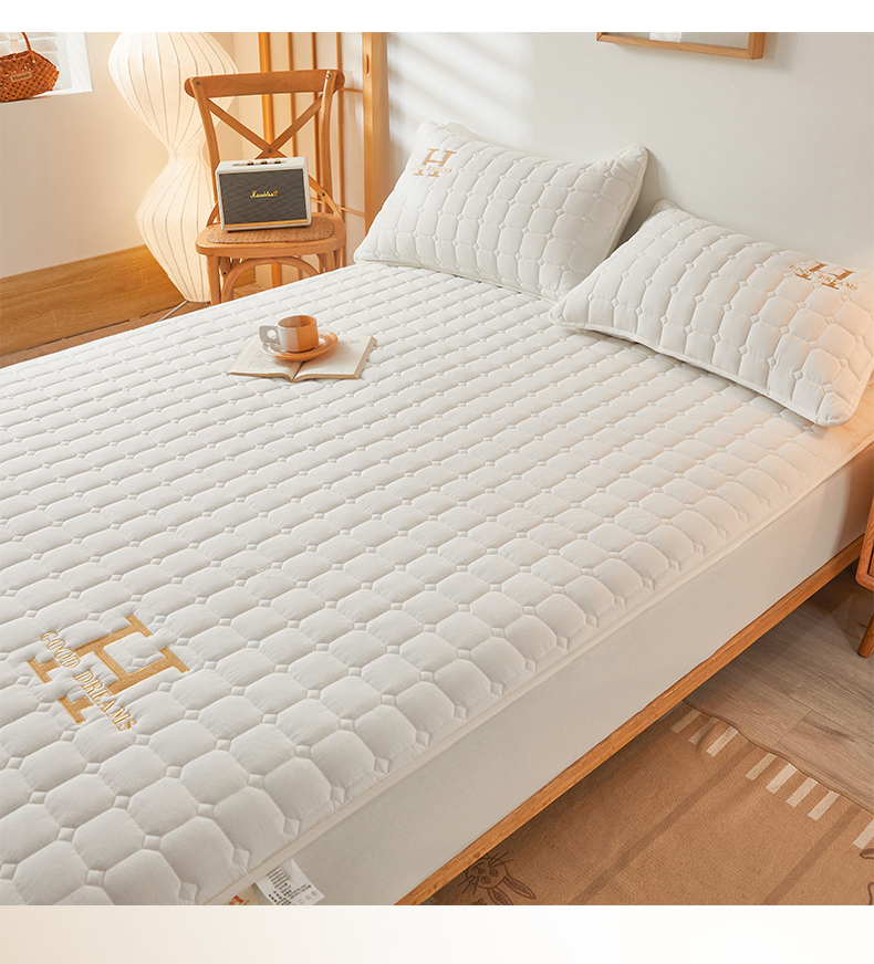 恒爱家纺 2025新款H系列全棉色织水洗棉床笠 奶白