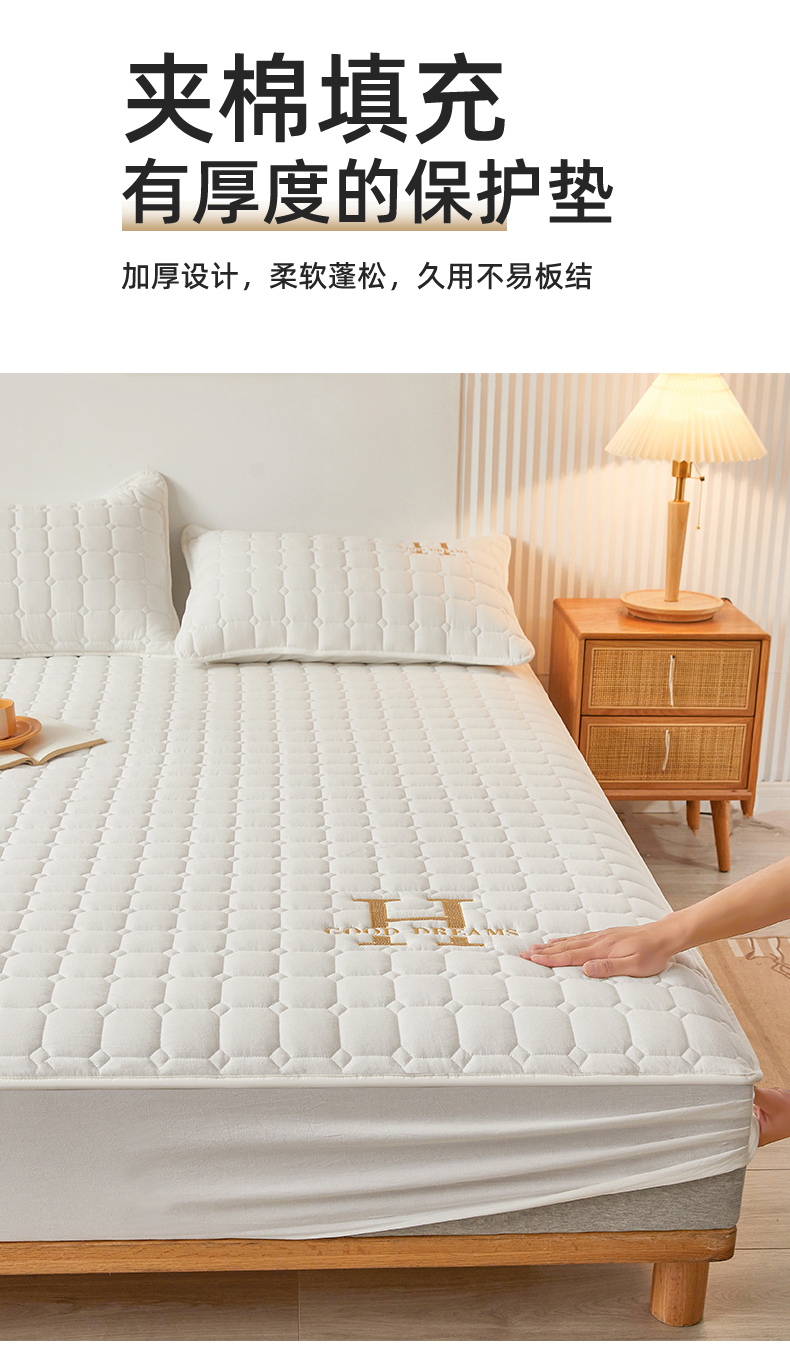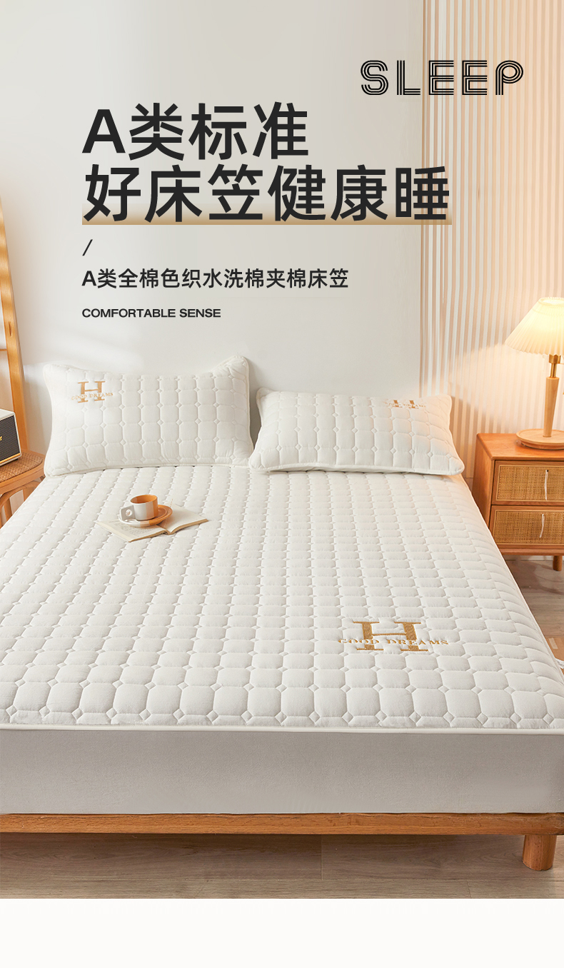 商品名称:恒爱家纺 2025新款H系列全棉色织水洗棉床笠 奶白