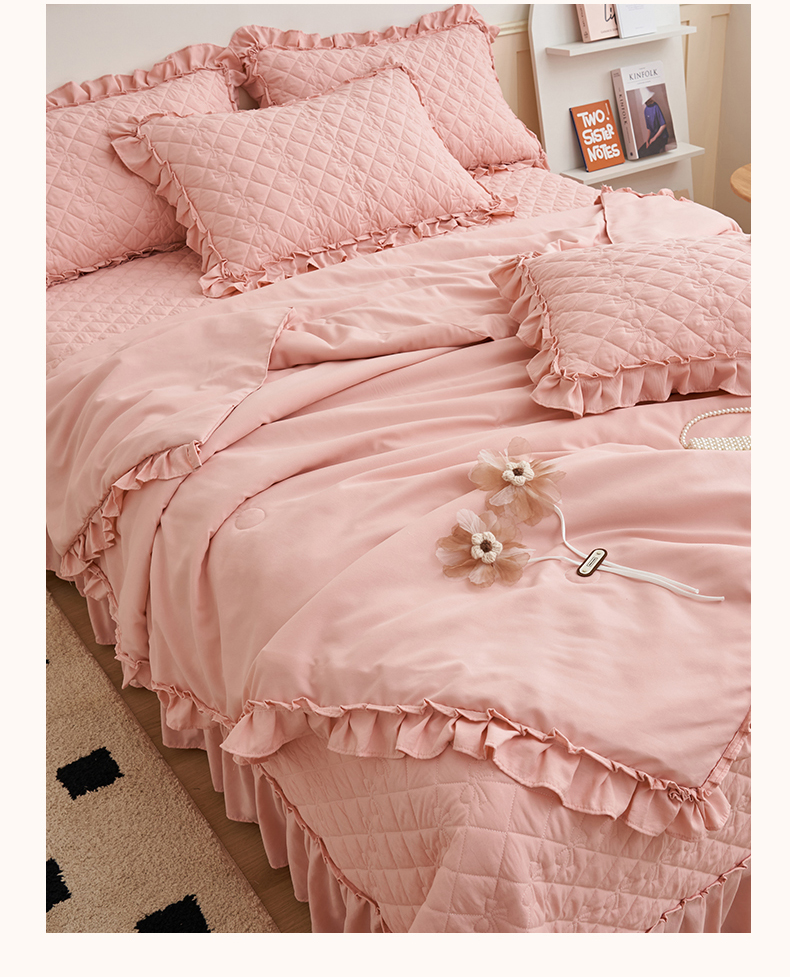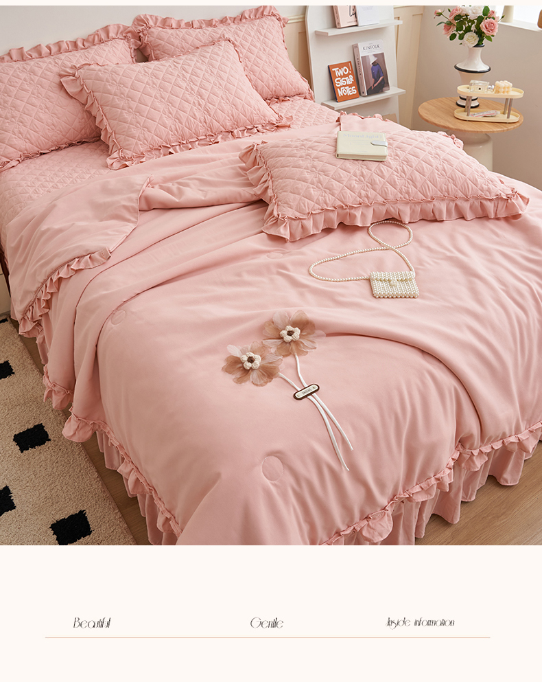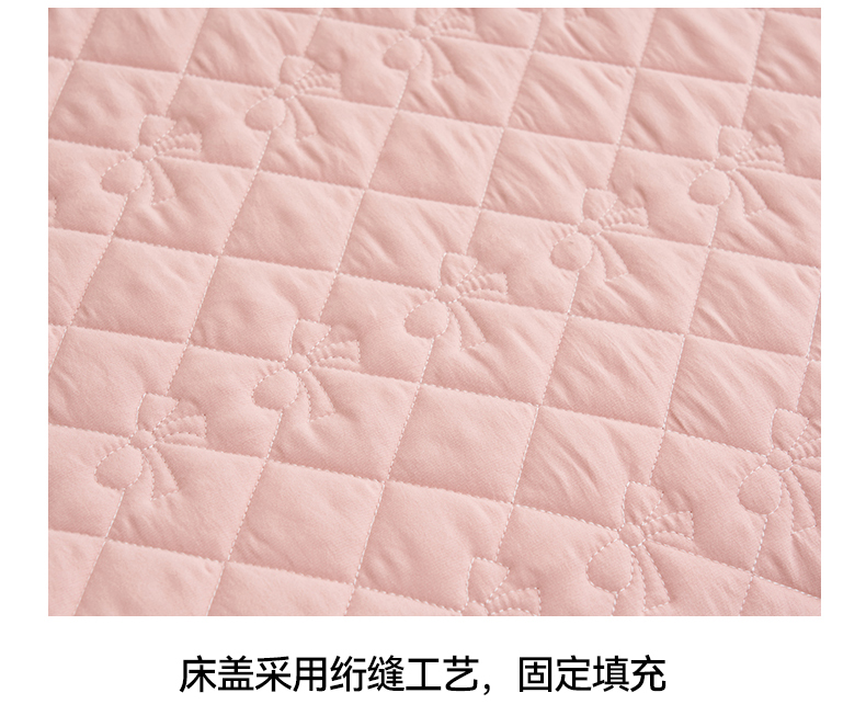 恒爱家纺 2025新款针织棉立体扶桑花夏被床盖四件套 浅豆沙