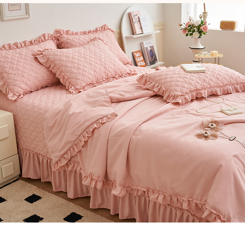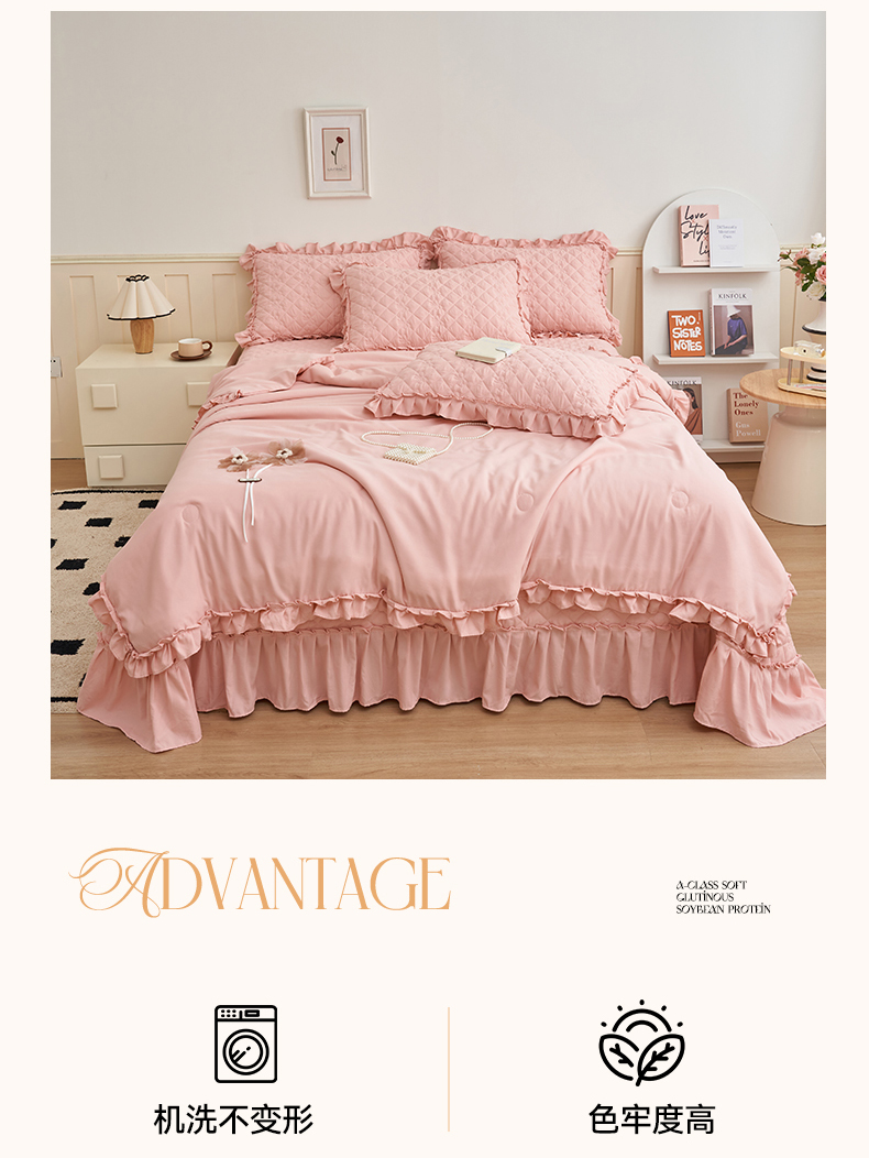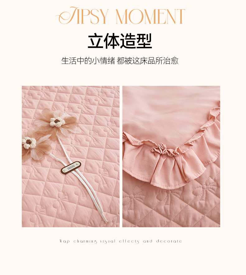 商品名称:恒爱家纺 2025新款针织棉立体扶桑花夏被床盖四件套 浅豆沙