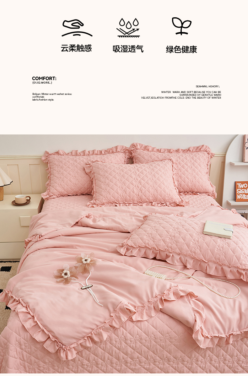 (总)恒爱 2022秋冬水晶绒翩翩花舞夹棉床裙四件套,大红色,豆沙红,橄榄绿,公主粉,桔色,咖啡色,孔雀绿,拉菲红,罗兰紫,玫红色,美人玉,米白色,米驼色,抹茶绿,浅灰色,紫色