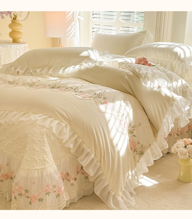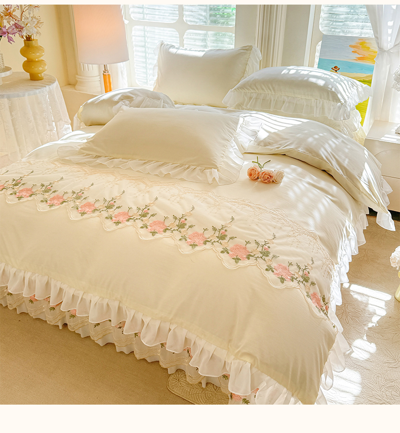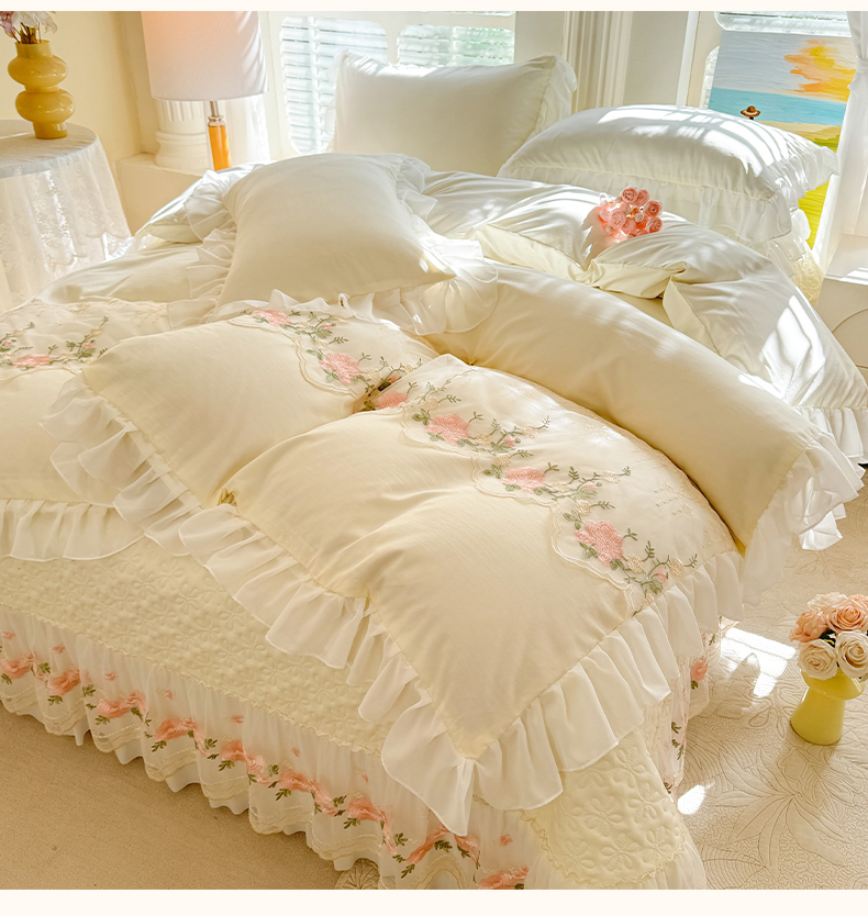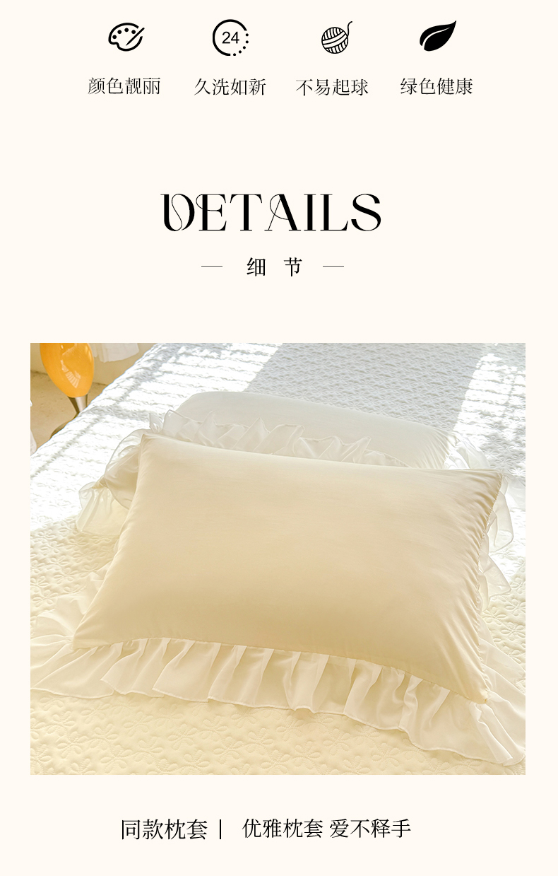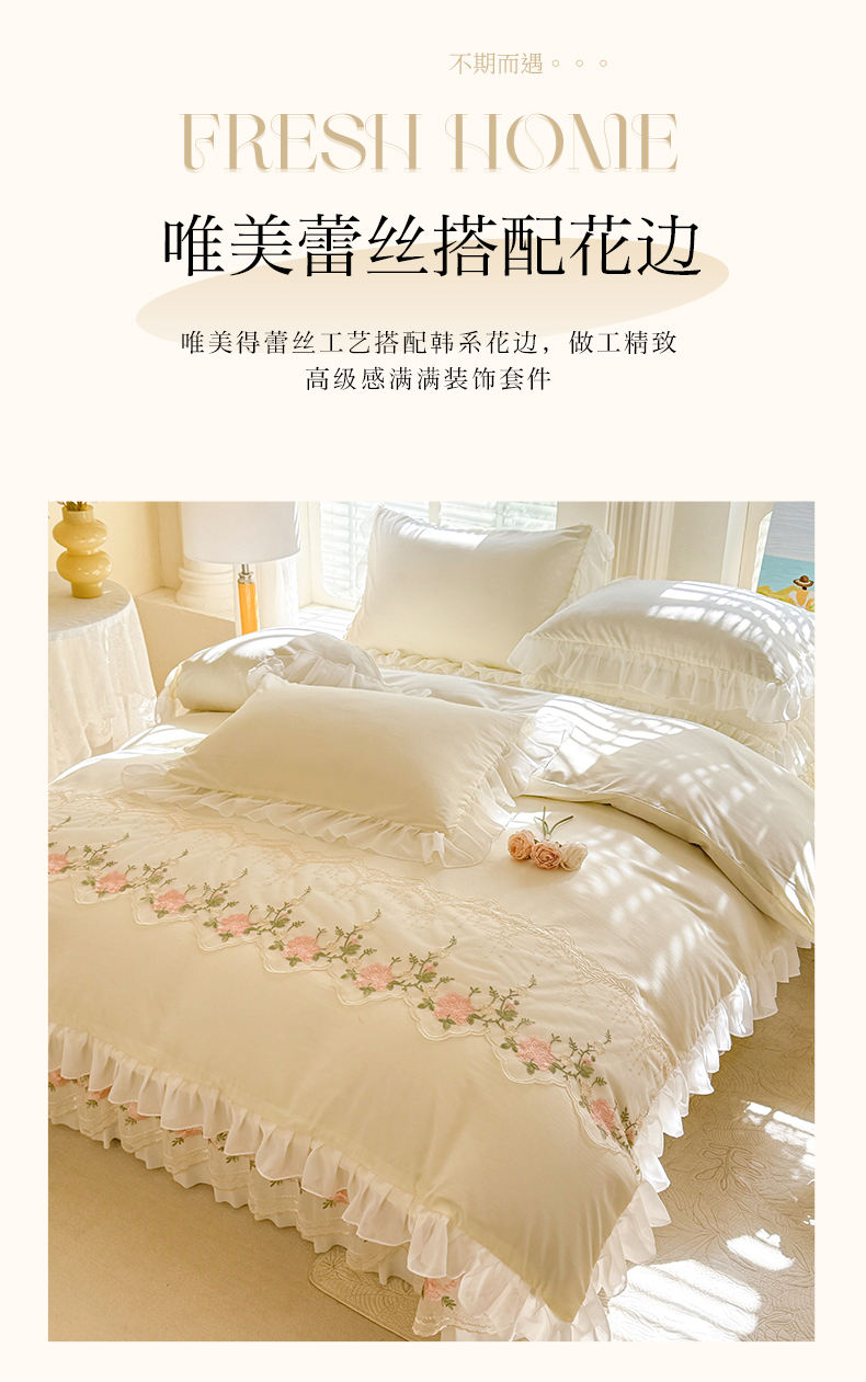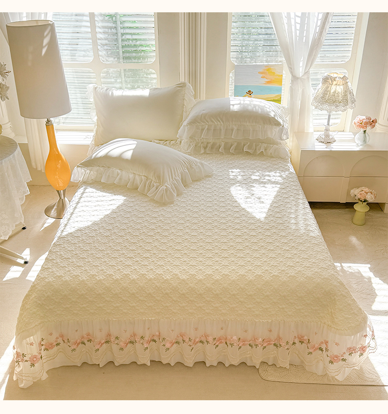 大麦家纺2025新款年新款亲肤花边款床盖四件套 甜心小姐-奶昔白