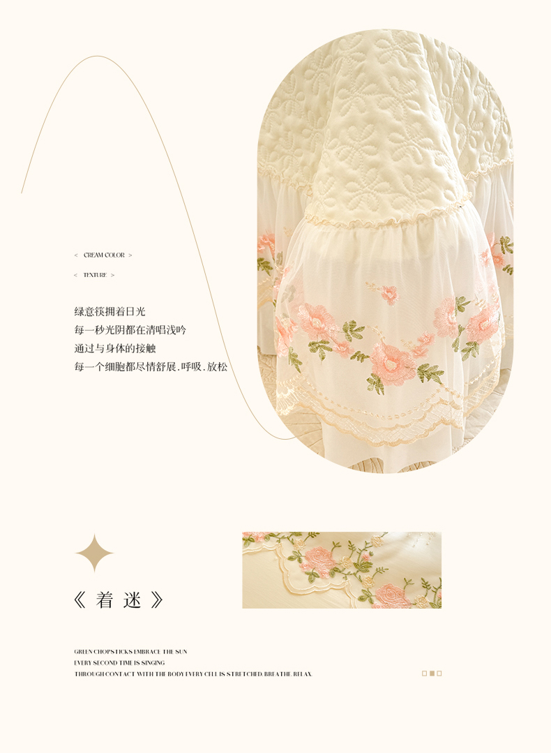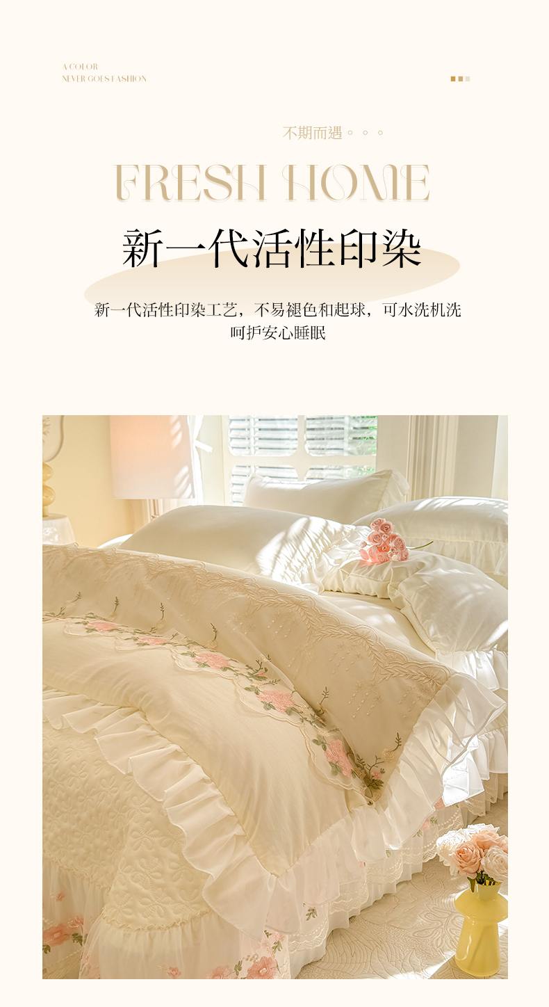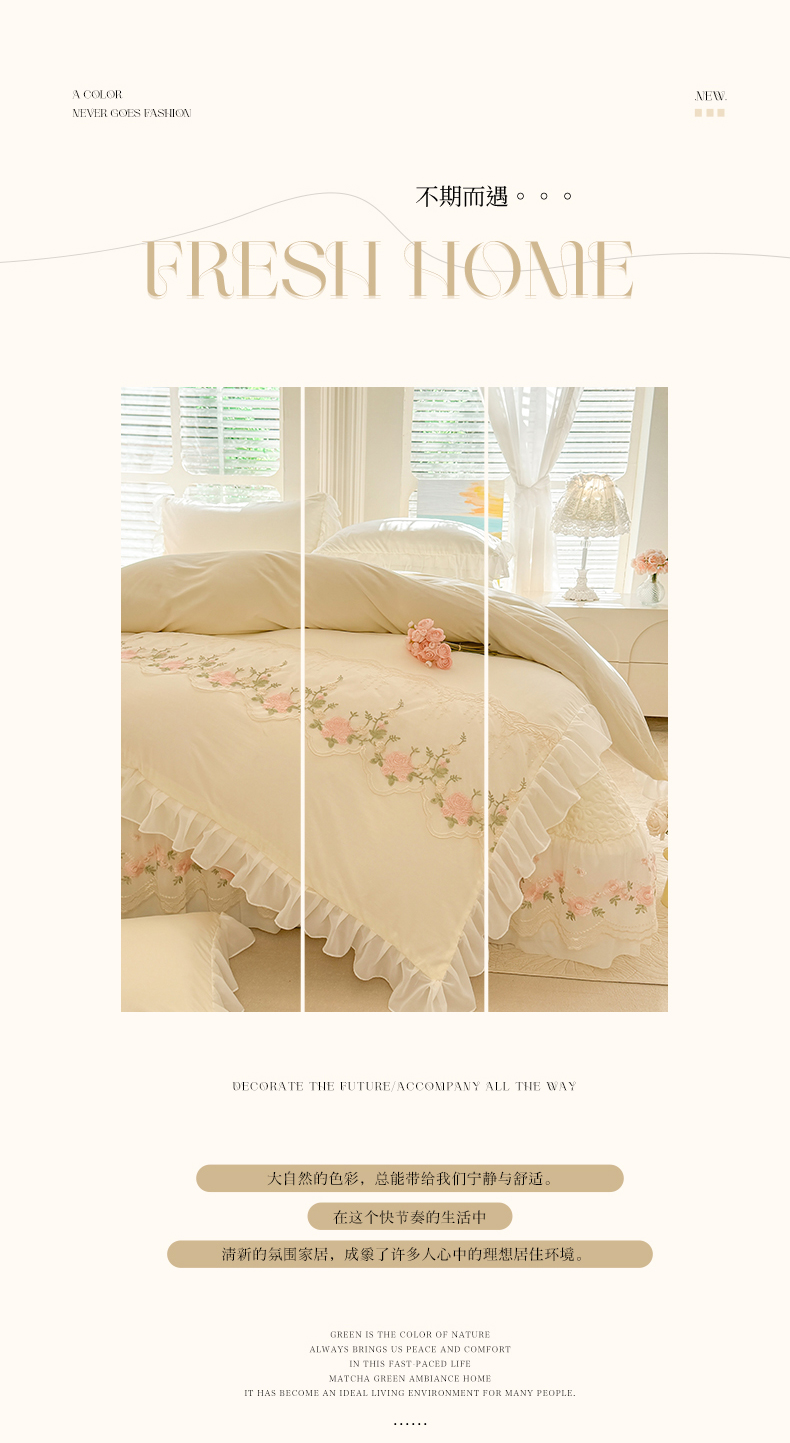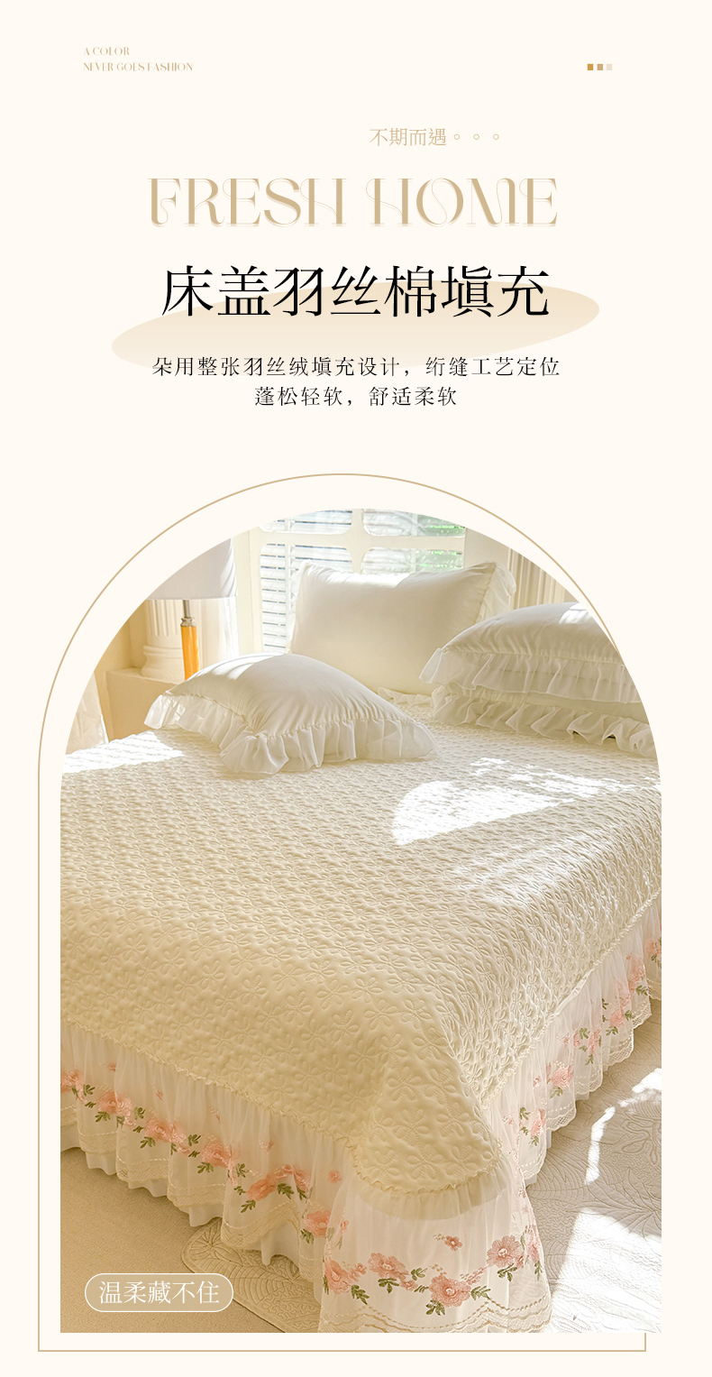大麦家纺2025新款年新款亲肤花边款床盖四件套 甜心小姐-奶昔白