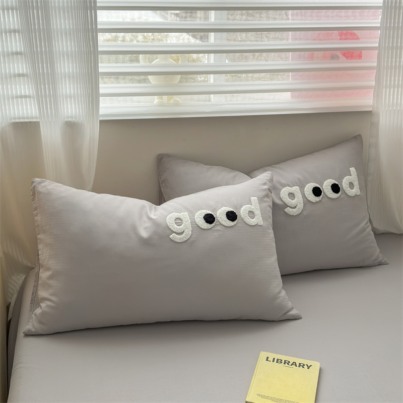 商品名称:丽涵 2025新款全棉纯棉大雁纹绣花单品枕套 good银沙灰