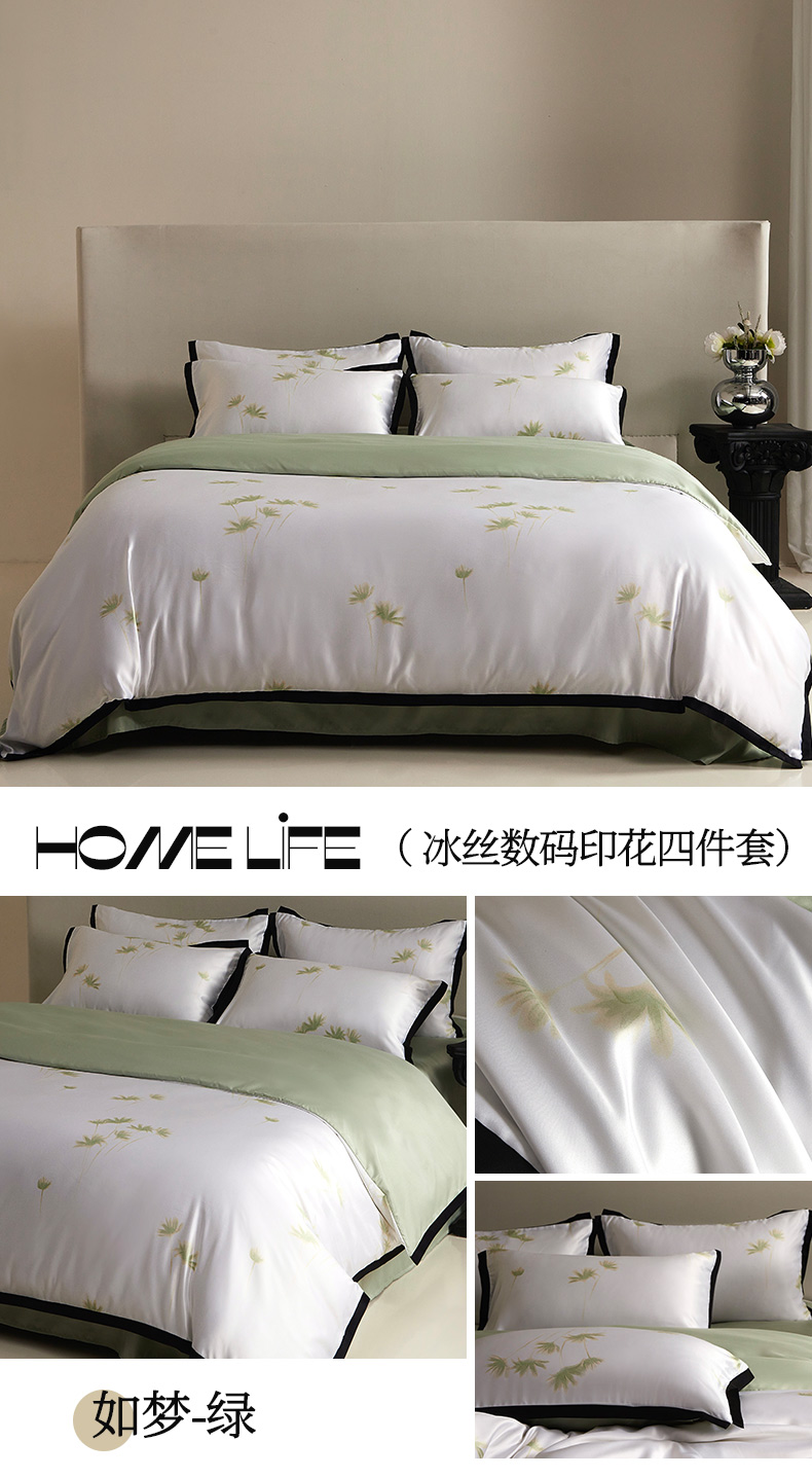 商品名称:优悦 2025新款冰丝数码印花四件套 如梦-绿