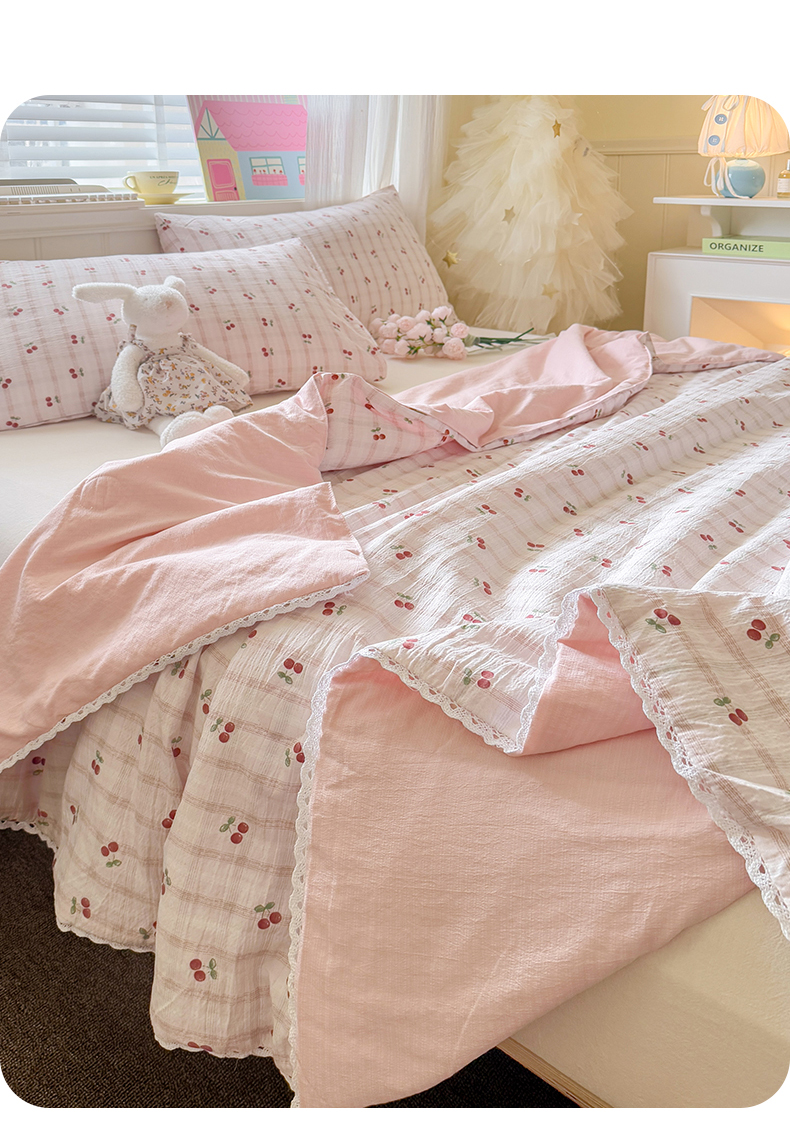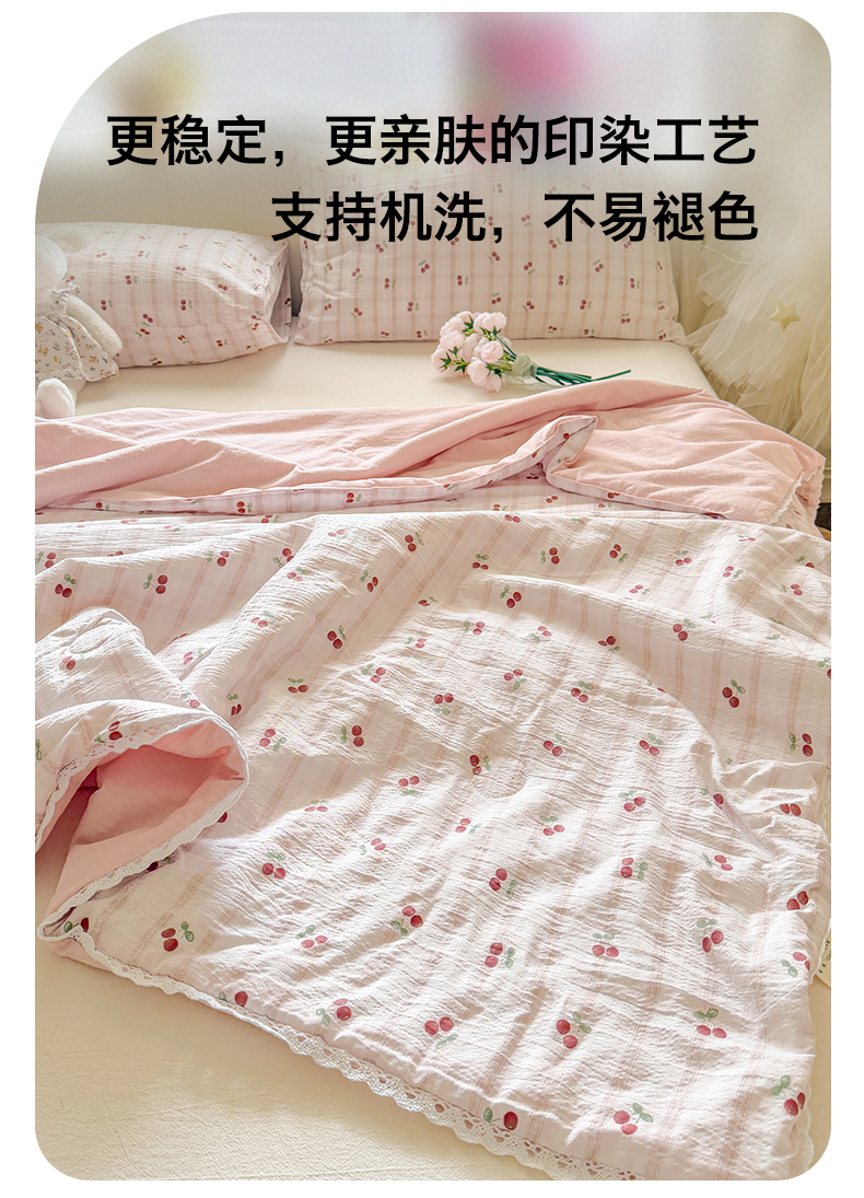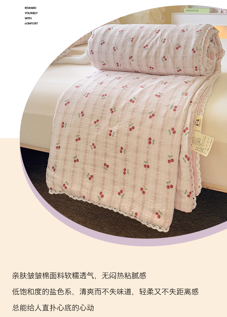 商品名称:名兮家居 2025新款皱皱棉夏被夏凉被空调被 樱桃可可