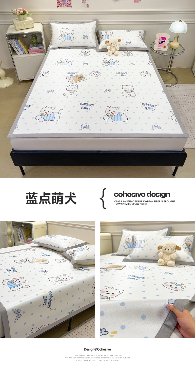商品名称:摩妮卡 2025小清新数码冰丝席 碳光席三件套 蓝点萌犬