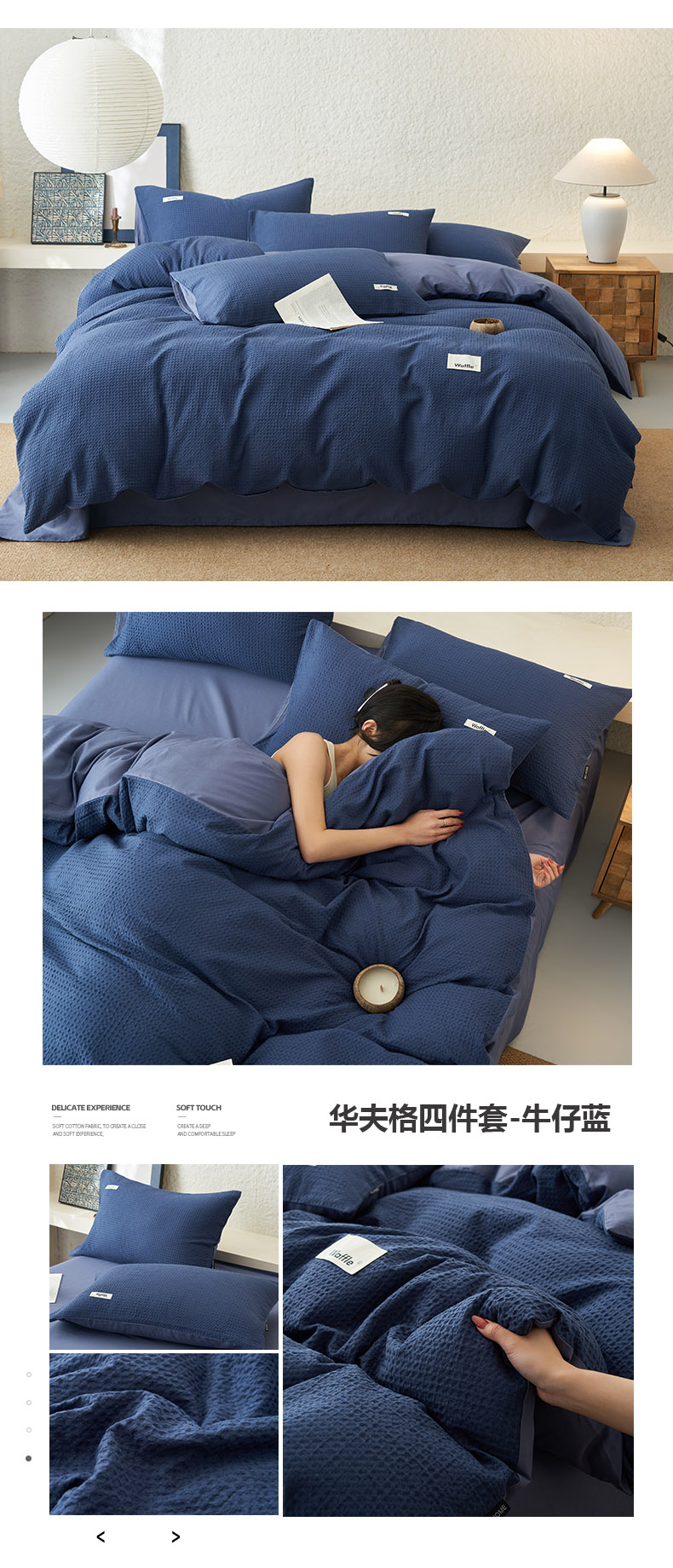 当前位置: 91家纺网 > 商品网购 > 床品套件 > 四件套 > 全棉普通四件套 > 寐绸家纺 2025新款纯棉华夫格四件套 华夫格四件套-牛仔蓝