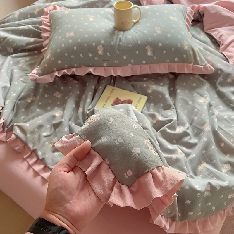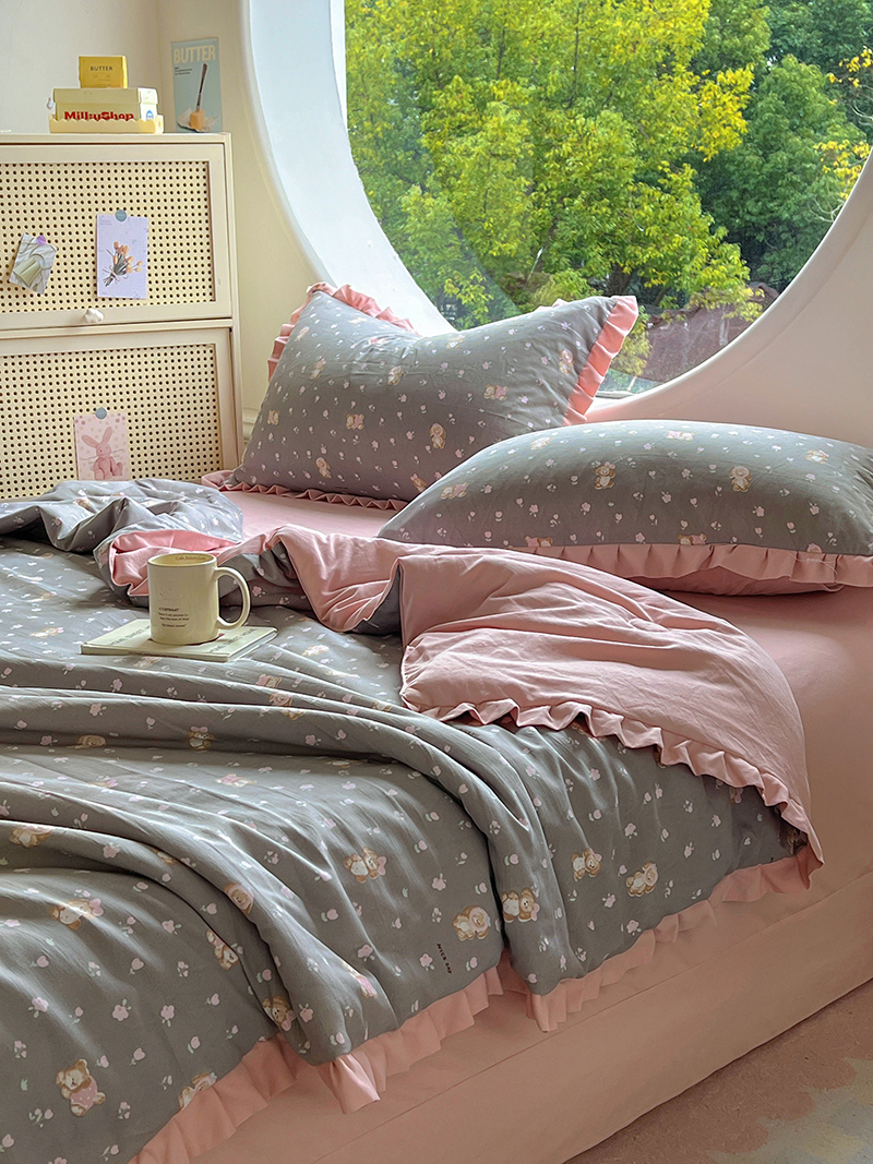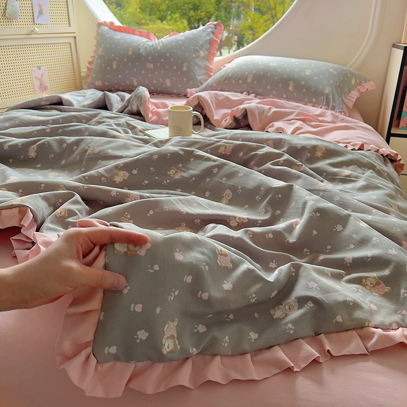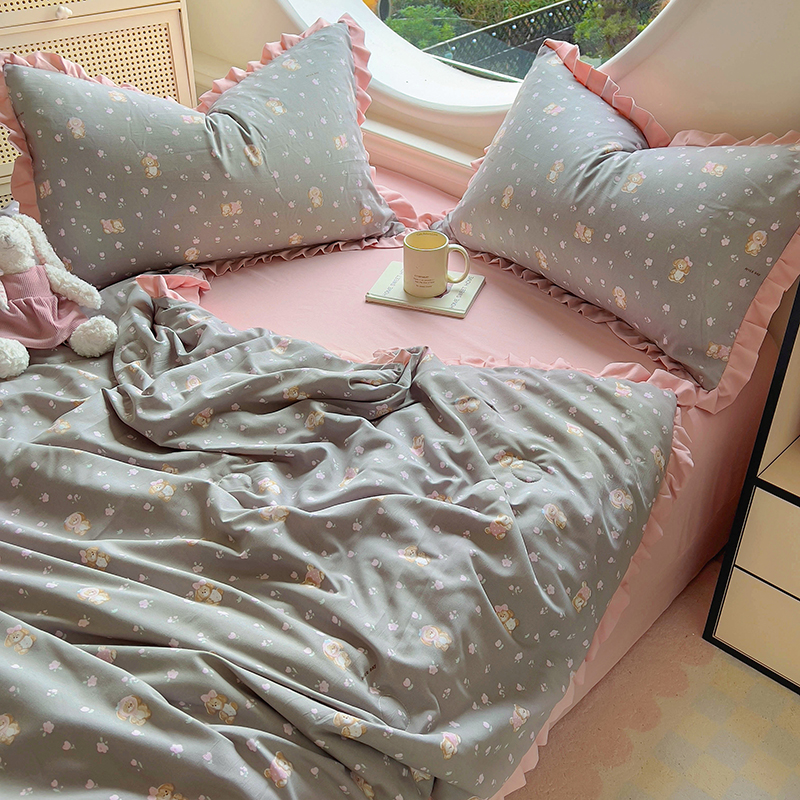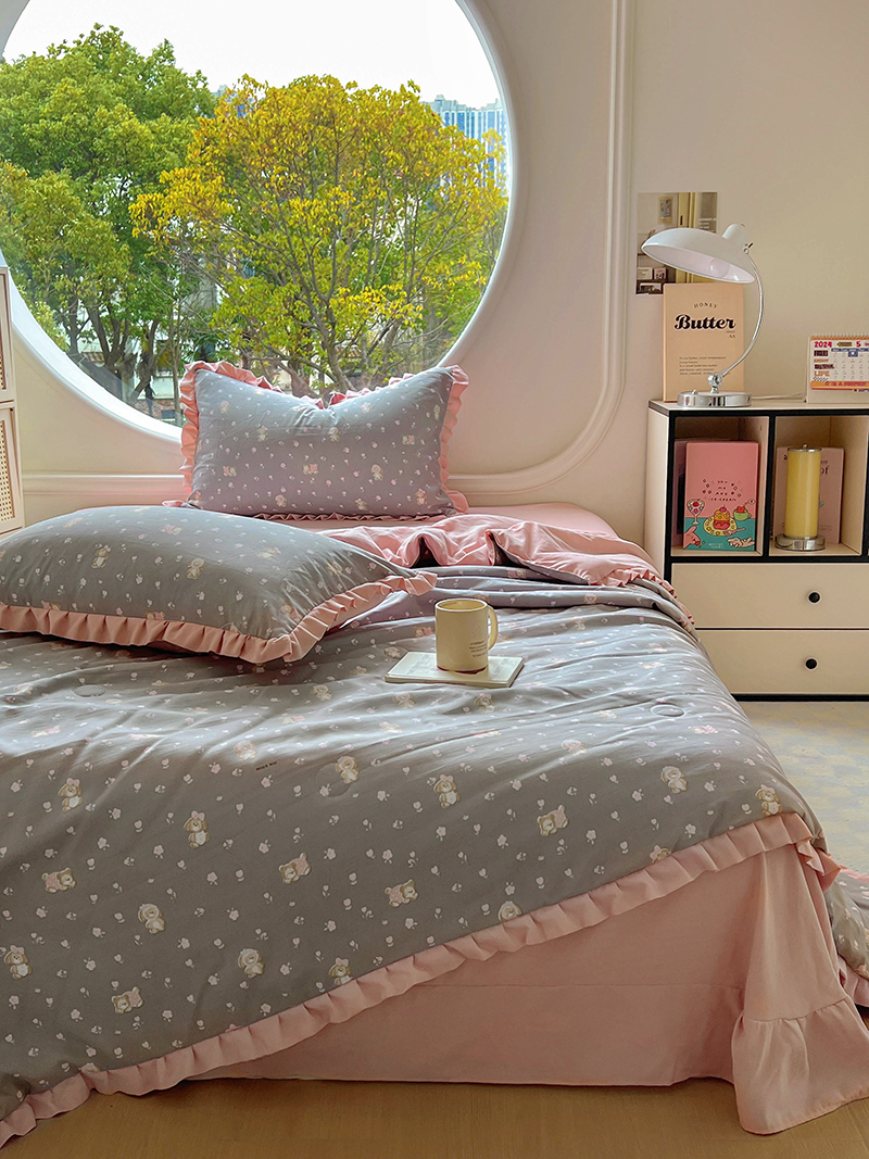 (总)欧尚 2026新款花边床盖四件套,春和,花束,花野,灰樱桃,咖爱心,咖豹纹,咖啡小猫,梨花落,绿爱心,梦境,木马,奶油波点,暖橘枝,暖心,人间草木,田园兔,小女孩,星愿,摇摇马,紫爱心,紫豹纹,紫苏