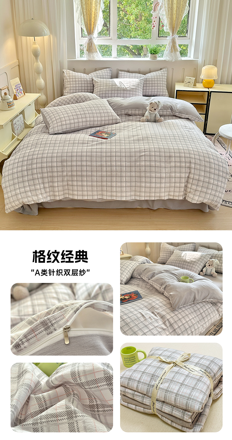当前位置: 91家纺网 > 商品网购 > 床品套件 > 四件套 > 其它四件套 > 玖明2025新款A类加厚柔软针织棉双层纱四件套 格纹经典